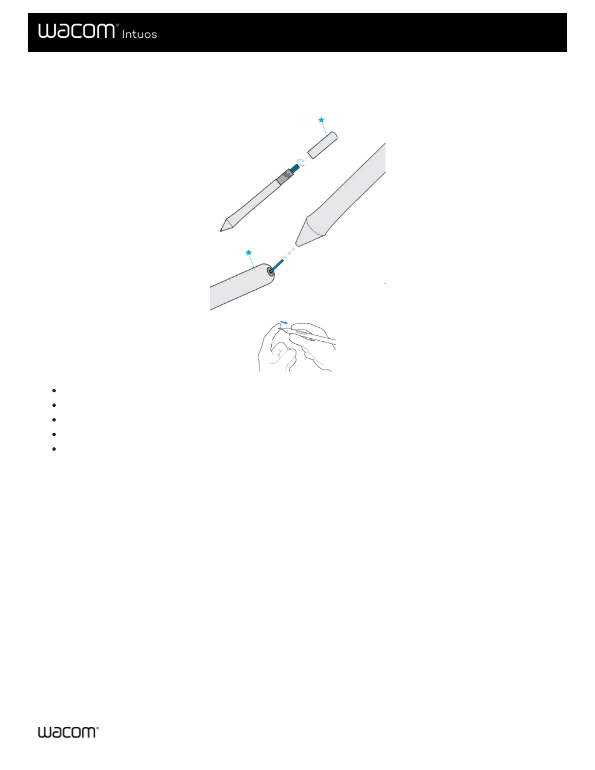 Extra pen nibs and a nib removal tool are provided in the end of the pen. Refer to the illustrations below for more detail: