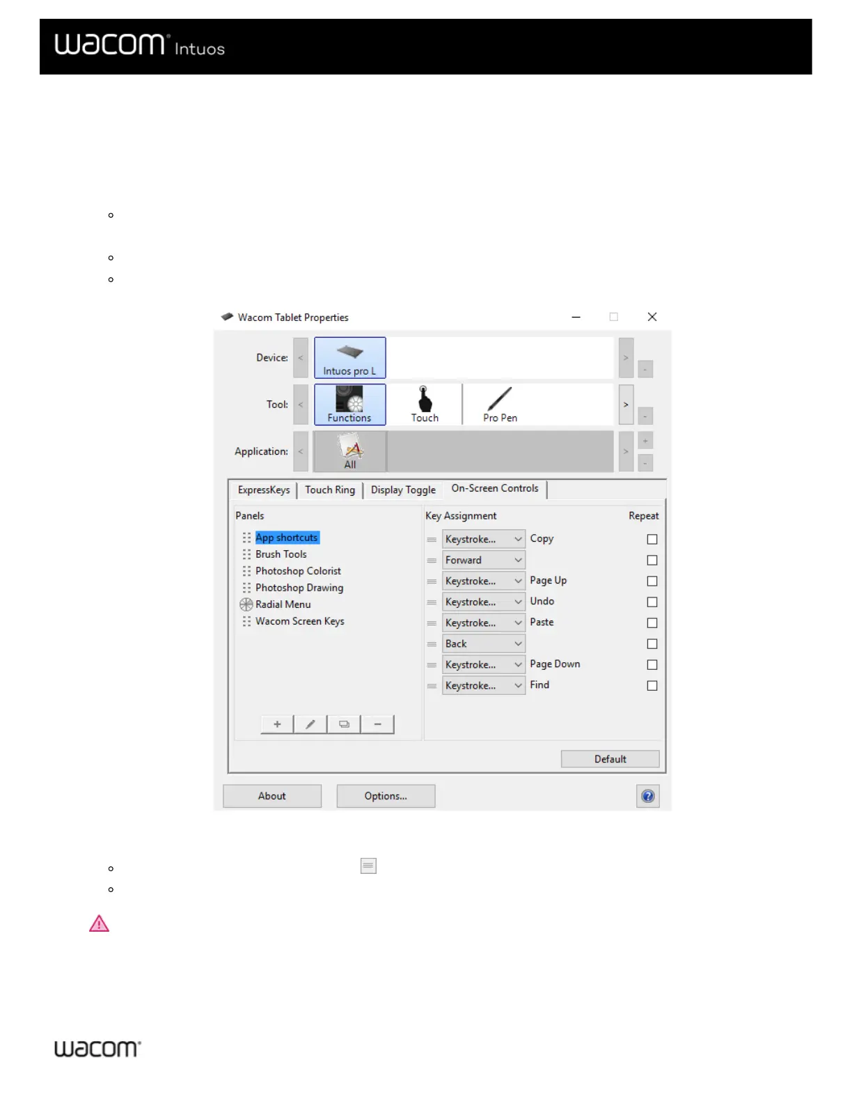 Important: Assign your On-Screen Control to a customizable component, like an ExpressKey or pen button, so that you