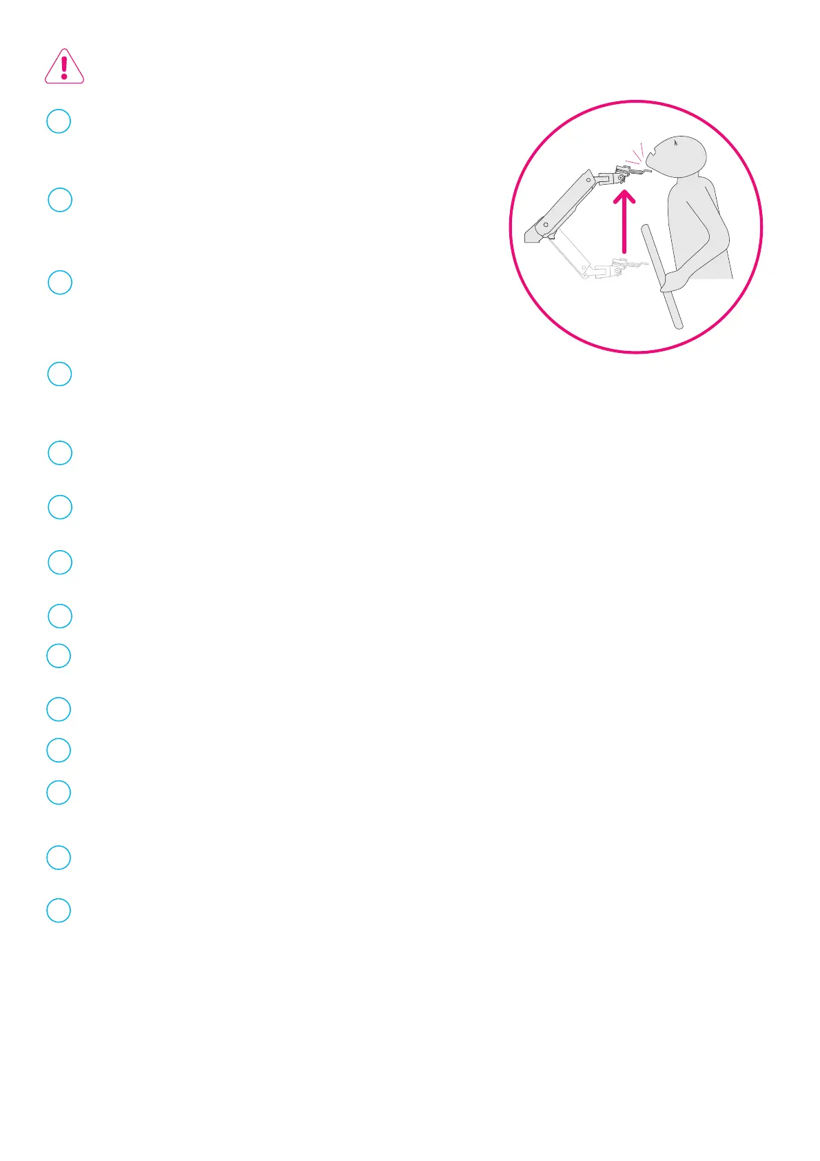 警告:儲能危險:臂機構處於繃緊狀態,並且一旦所連接的設備被拆下,將迅速向上移動(就其本身而言)。因此,除非臂已經移動到最高位置,否則不