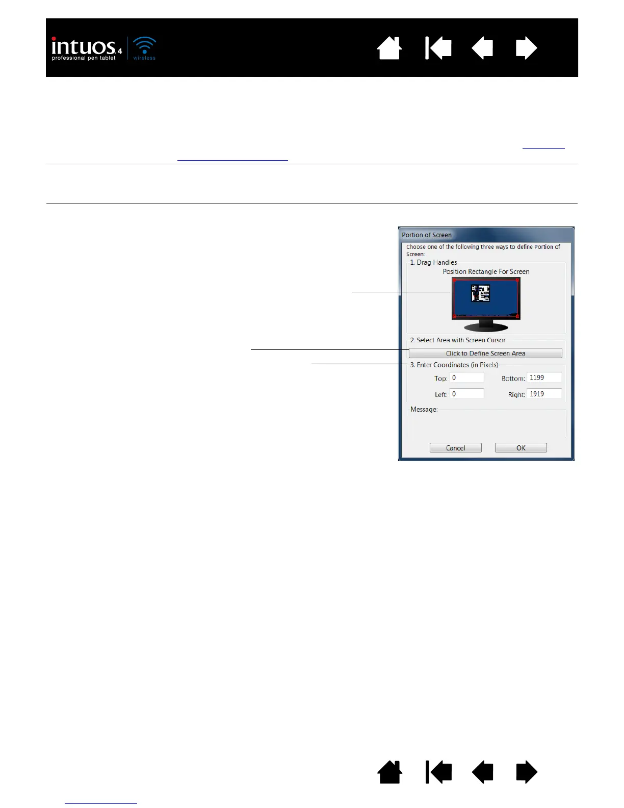 Use the MAPPING tab SCREEN AREA options to define the portion of the display screen to which your tablet