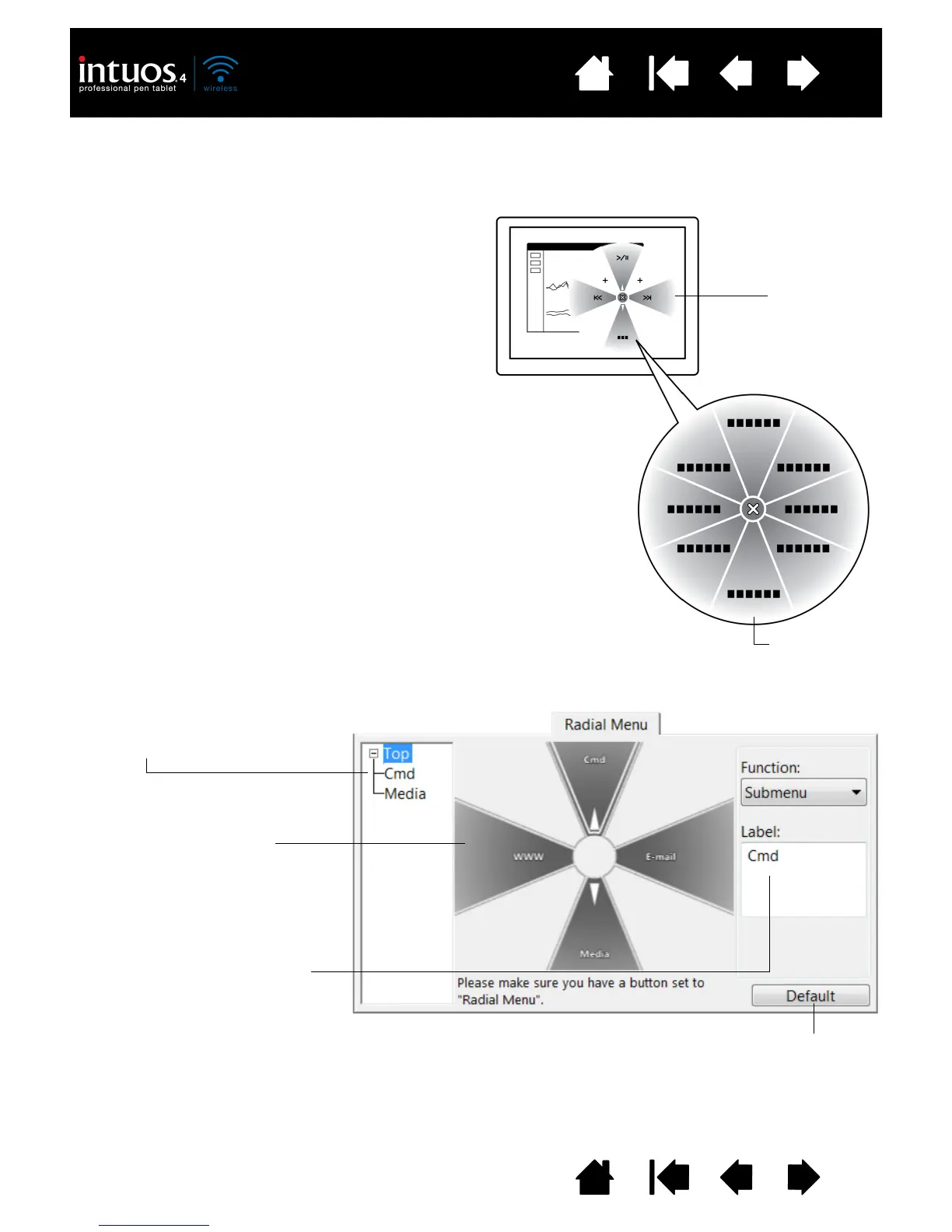ADIAL MENU tab to customize the available functions on the Radial Menu:
