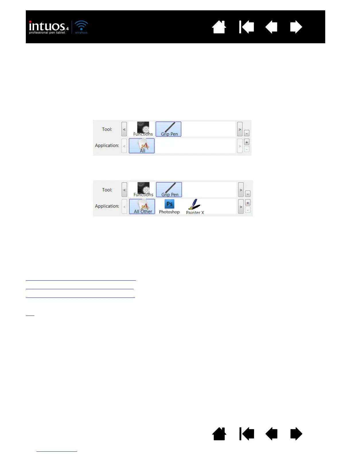 You can customize your Intuos4 tools for use with a particular application. For example, you may prefer a