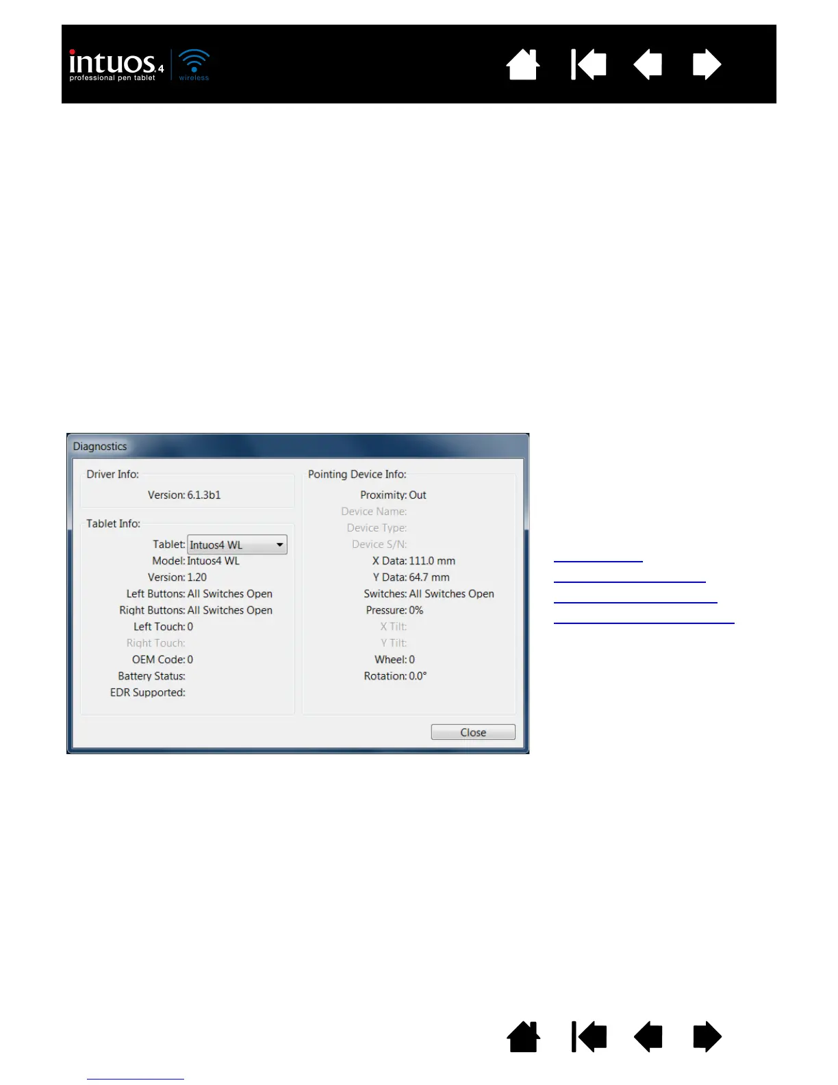 IAGNOSTICS dialog box when testing your tablet and tools.