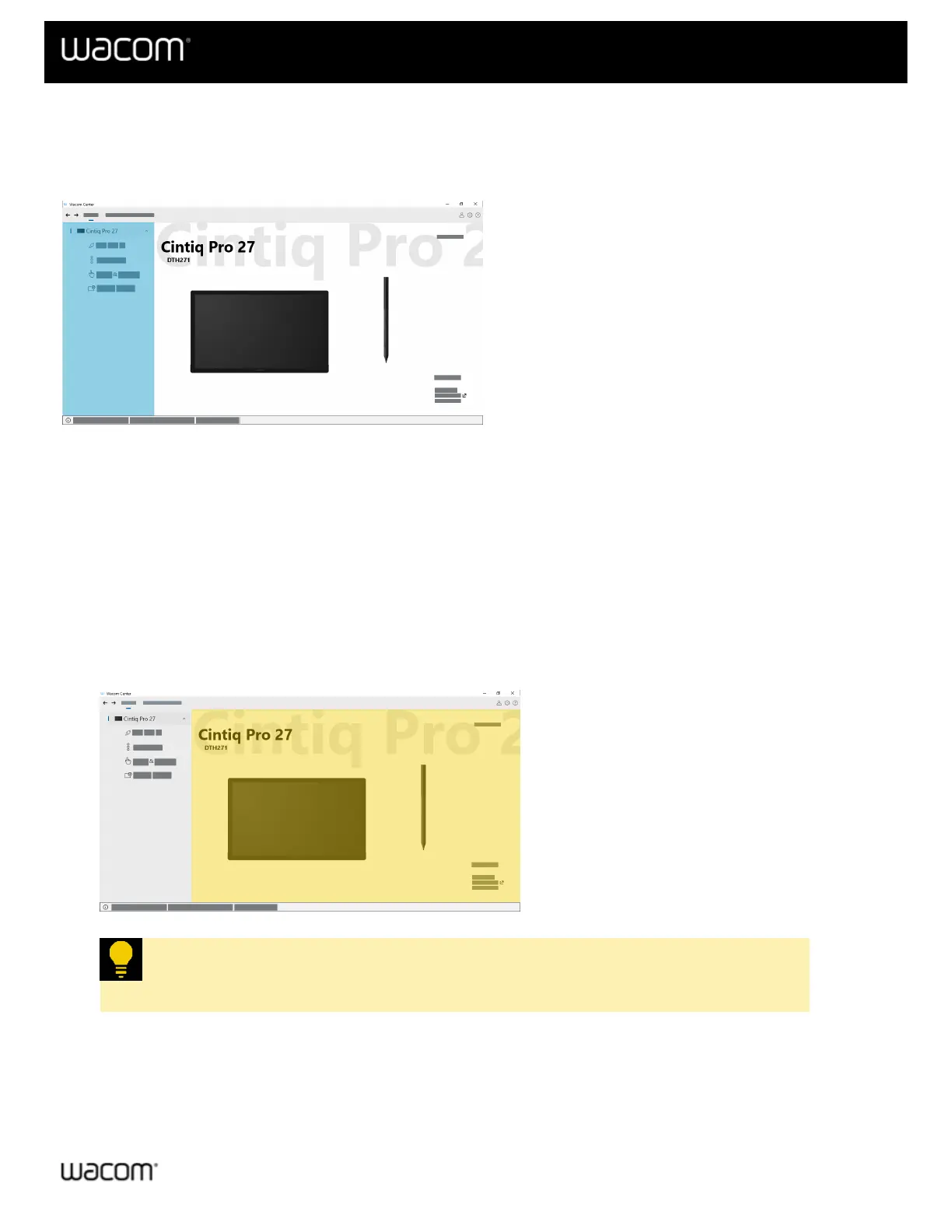 The main content area is located in the center of Wacom Center and is where you can either customize your device