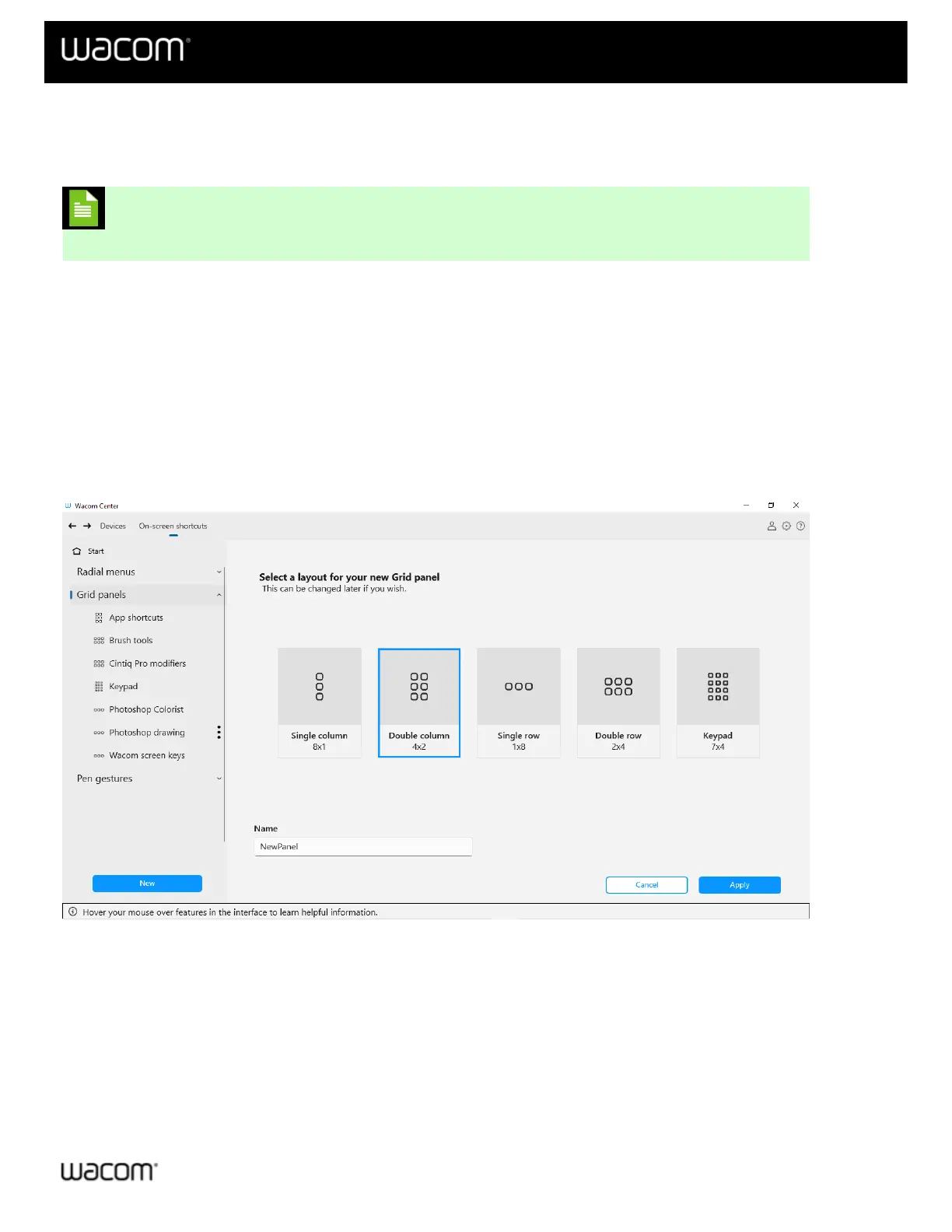 6. Click the Apply button to create your new Radial menu or Grid panel. You will proceed to the On-screen