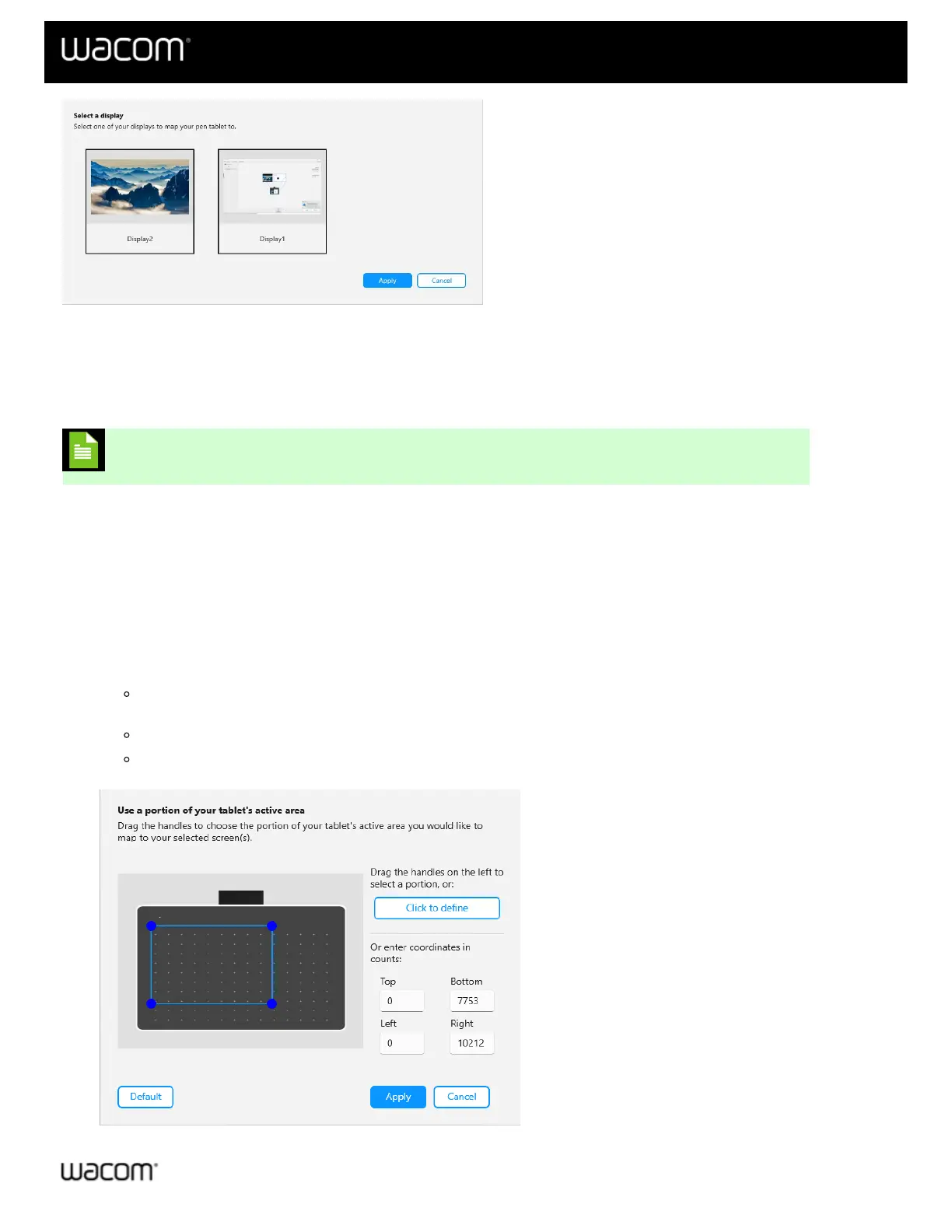 7. On the Use a portion of your tablet's active area screen, use any of the following methods to change your