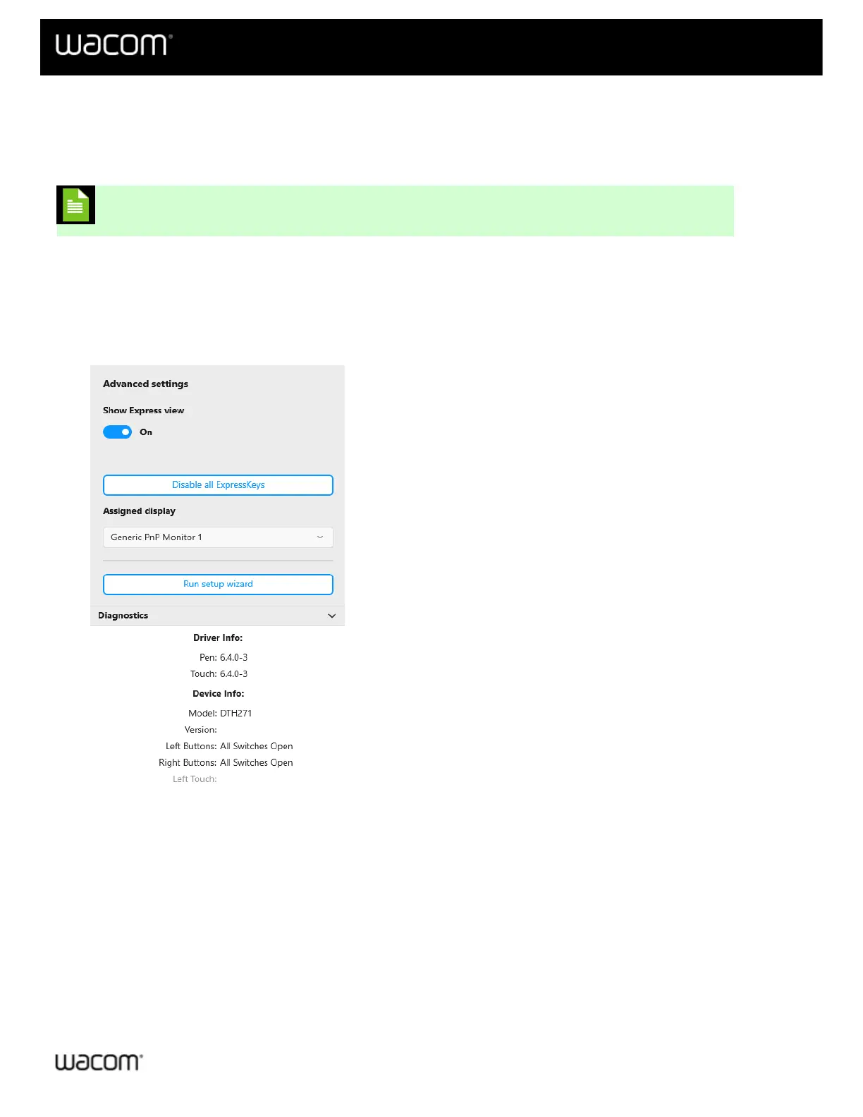 outlined on the Wacom Support page. If you are still having issues, use the diagnostic steps below.