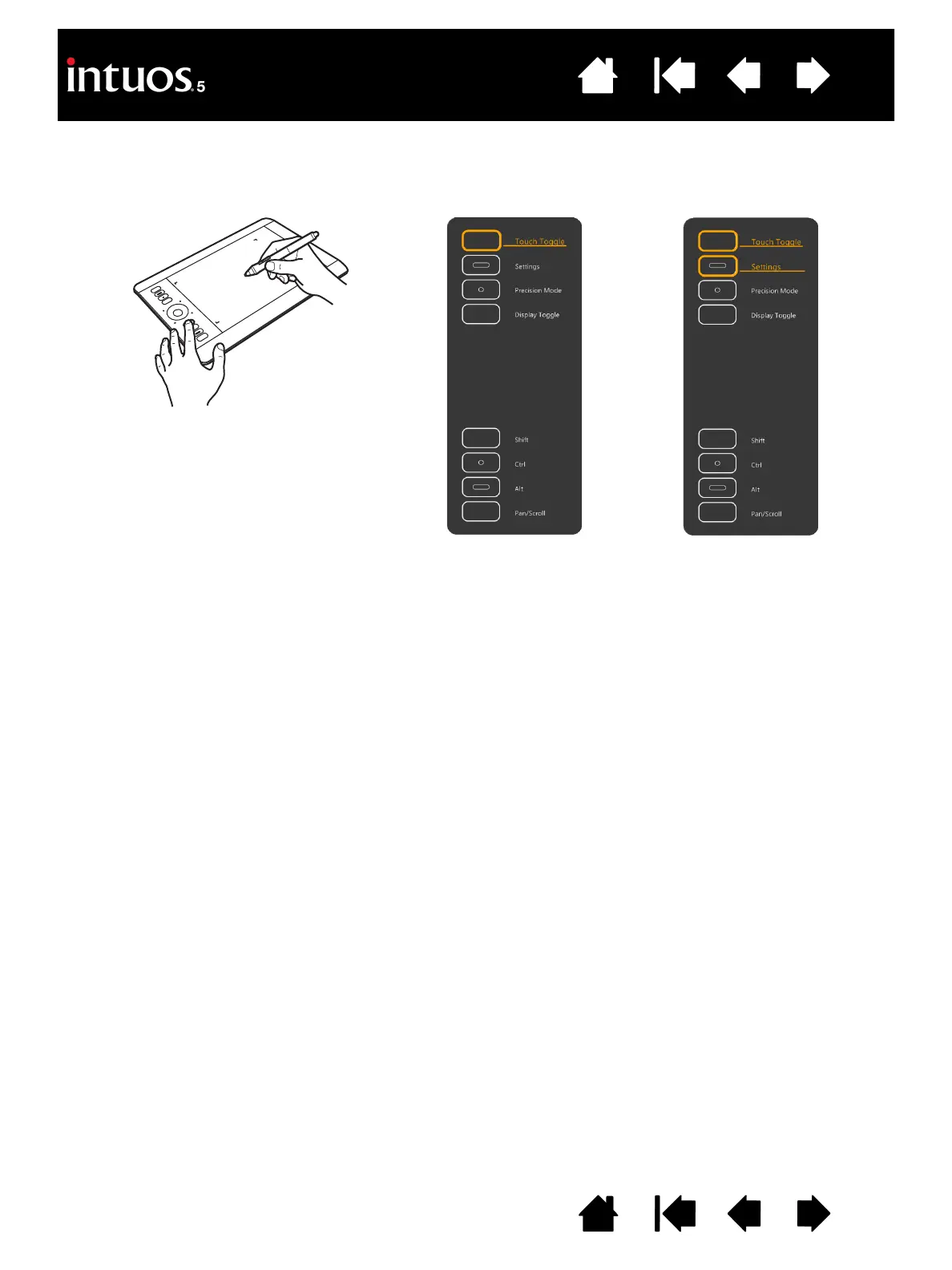 • The ExpressKey you touch appears highlighted in the display. Move your finger along the ExpressKeys