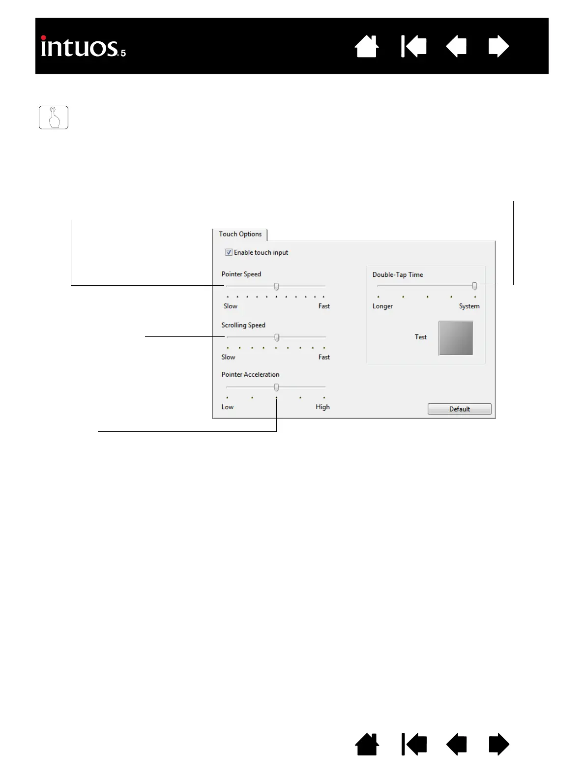 Note: Touch speed and acceleration settings are independent of system settings. Changes you make to these