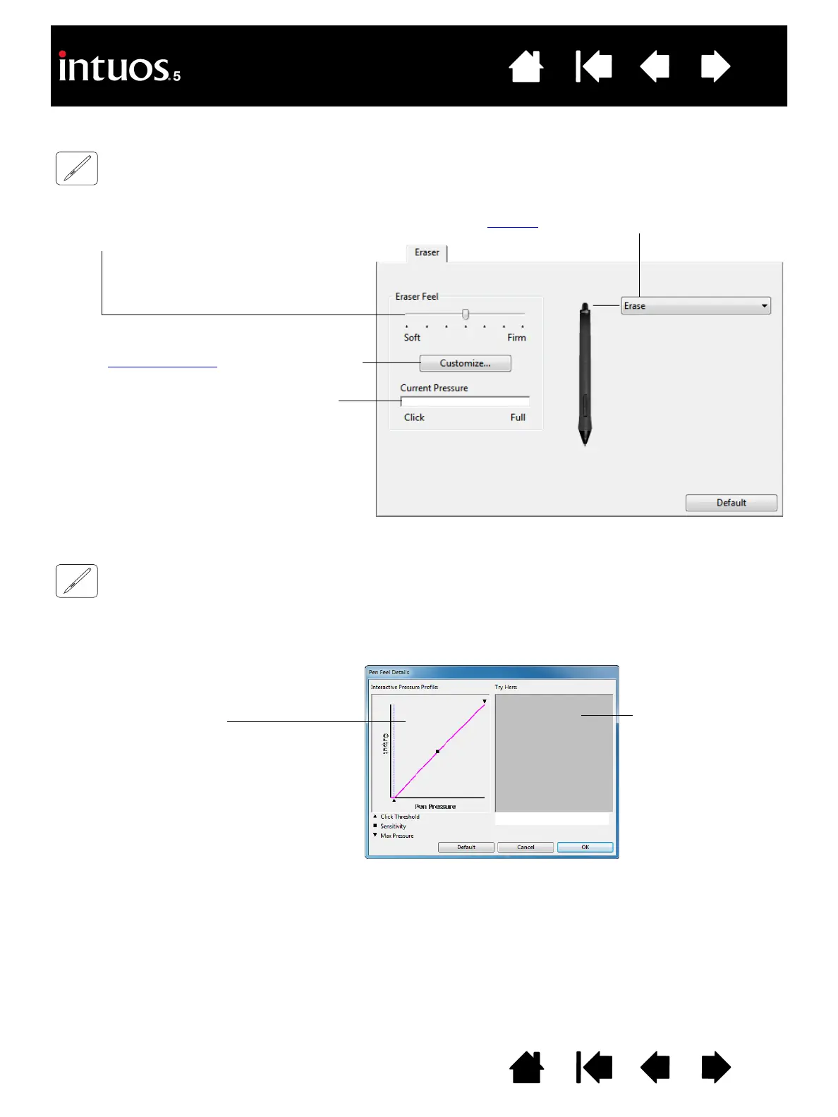 USTOMIZE... button. Options within the PEN FEEL DETAILS dialog box enable you to independently change