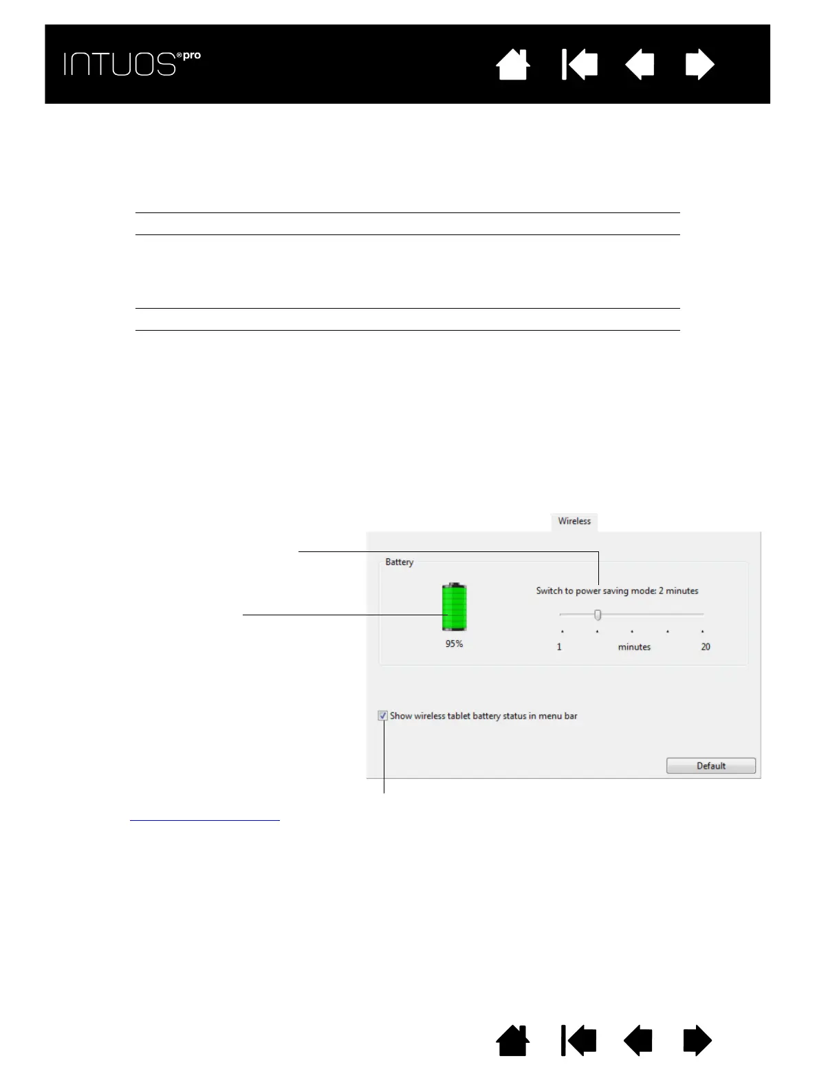 • When configured for wireless operation, you can view the tablet battery status and wireless control