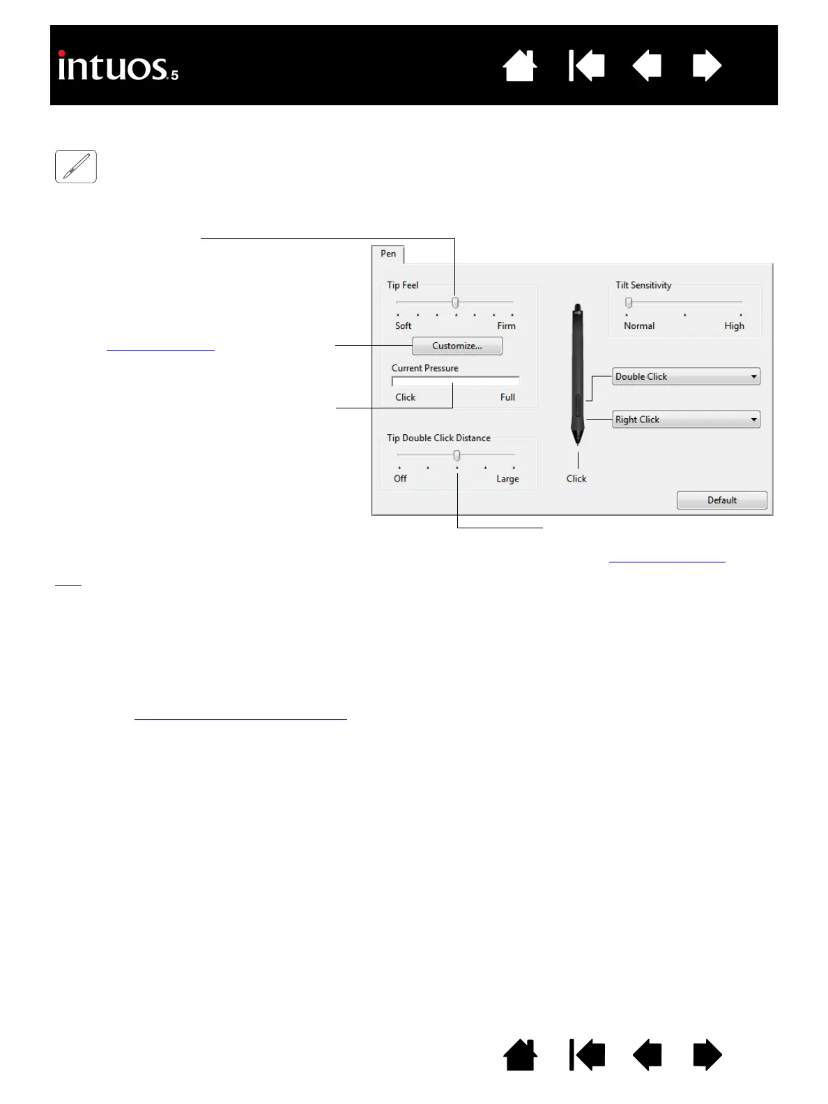 the tablet with the pen tip. Use the pressure bar