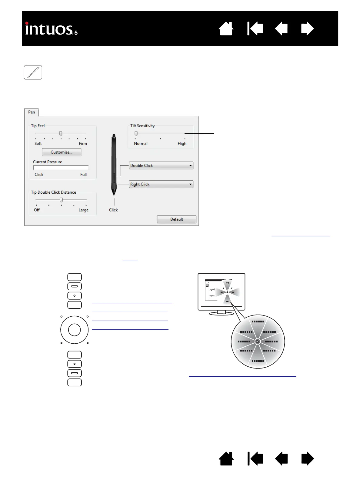 To customize your Intuos5 tablet, open the Wacom Tablet control panel and select the FUNCTIONS icon in