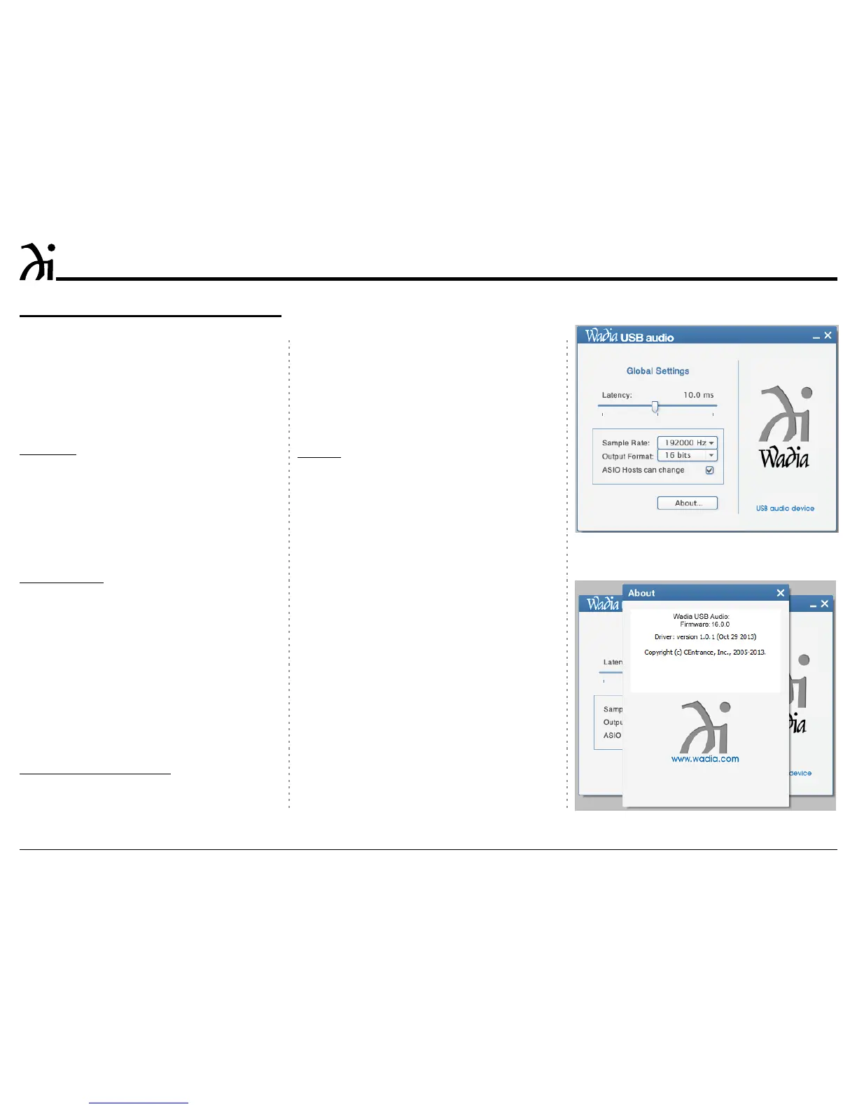 sion of the current Wadia USB Audio Driver. Refer to