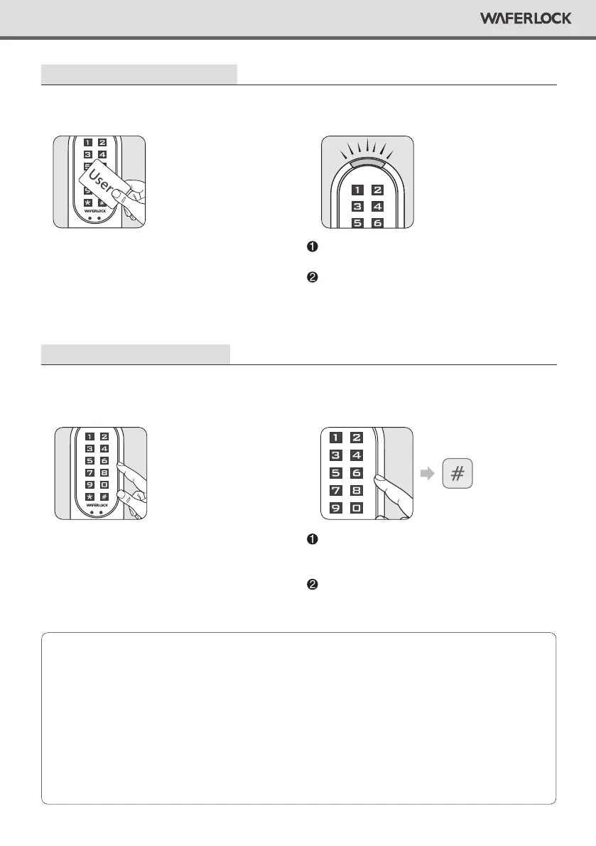 • During entering PIN Code, if the users approach to the reader with a user card, the lock will be