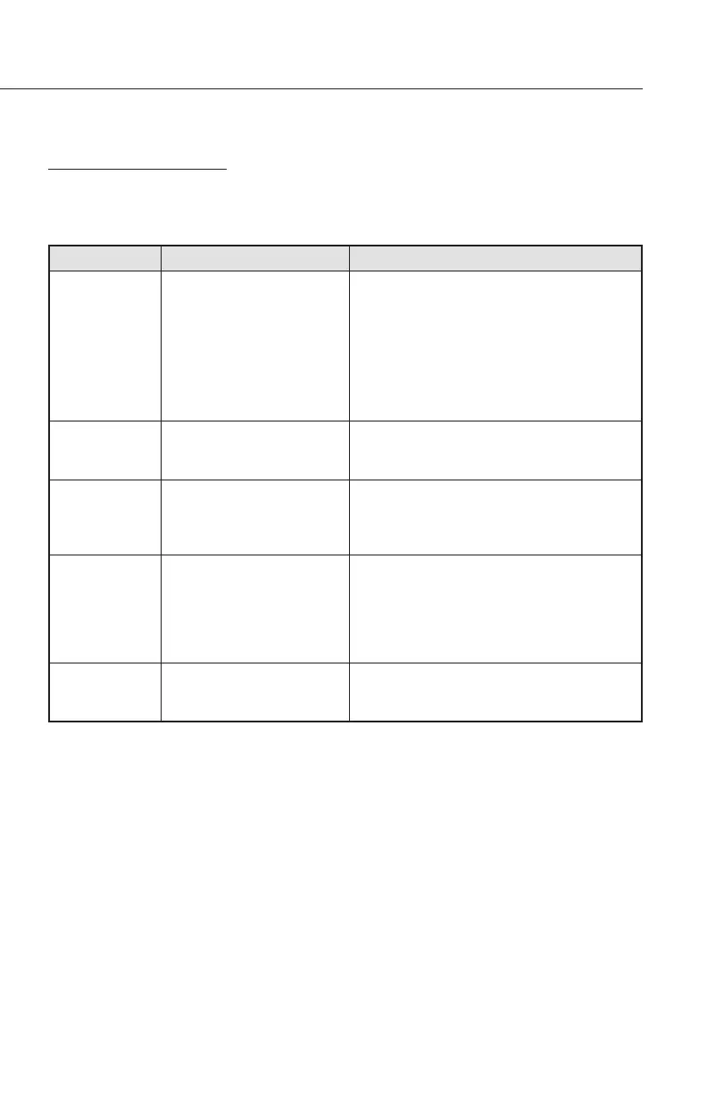 illuminates on the cable safety block. The following chart displays the combinations of warning