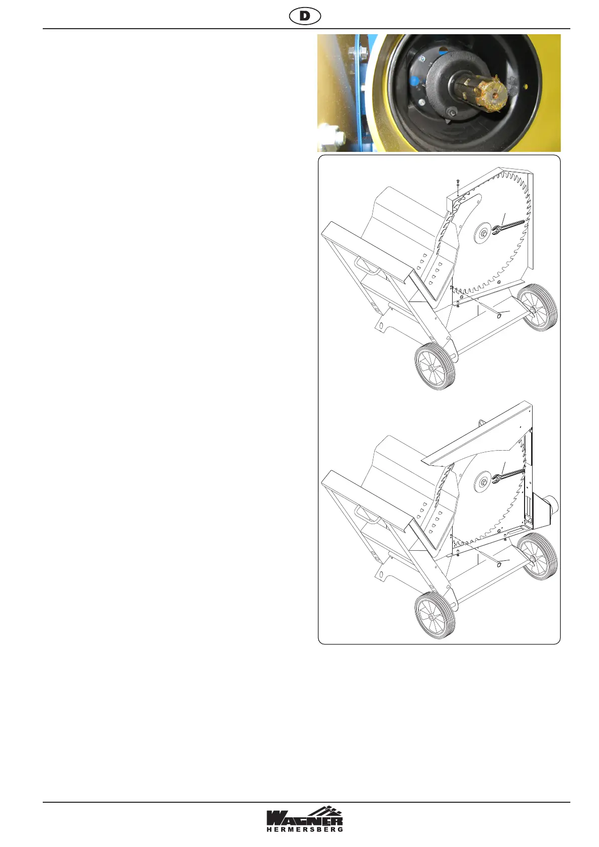 • Der Sägeblattwechsel kann nur in Brennholzschnittstellung