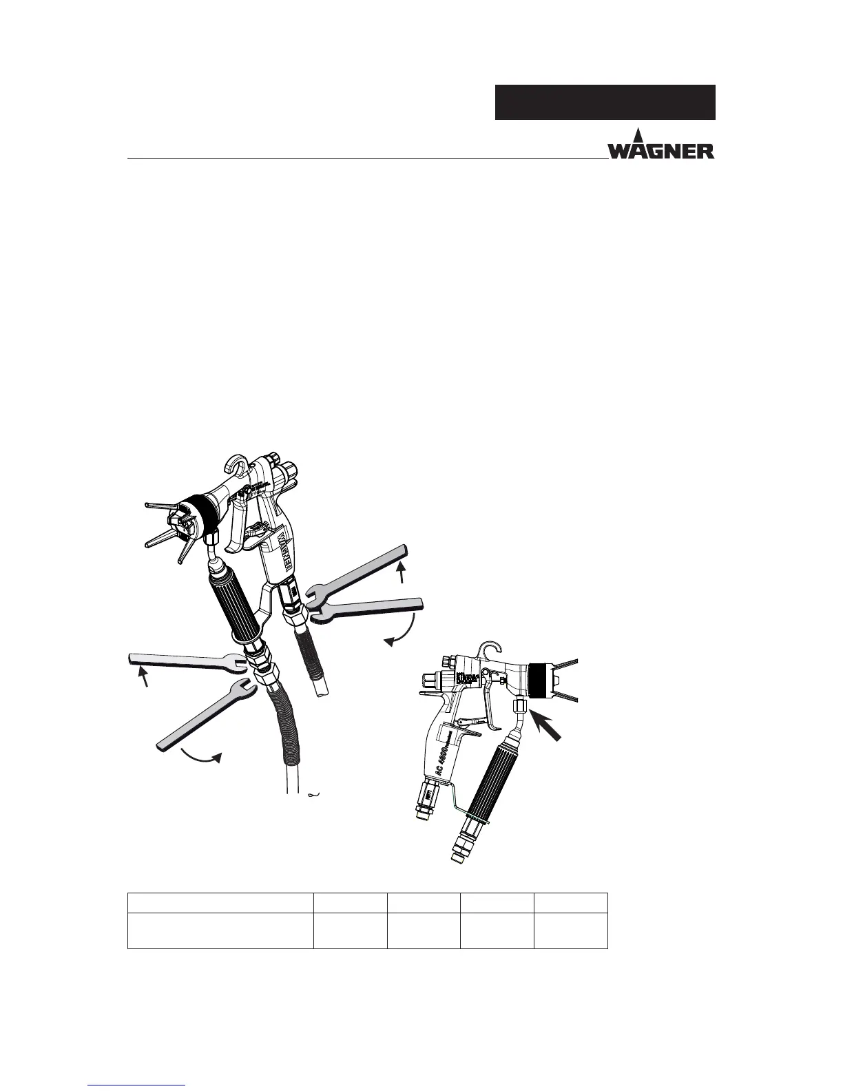 Fit the material hose respectively air hose by hand and tighten with 2 open-ended