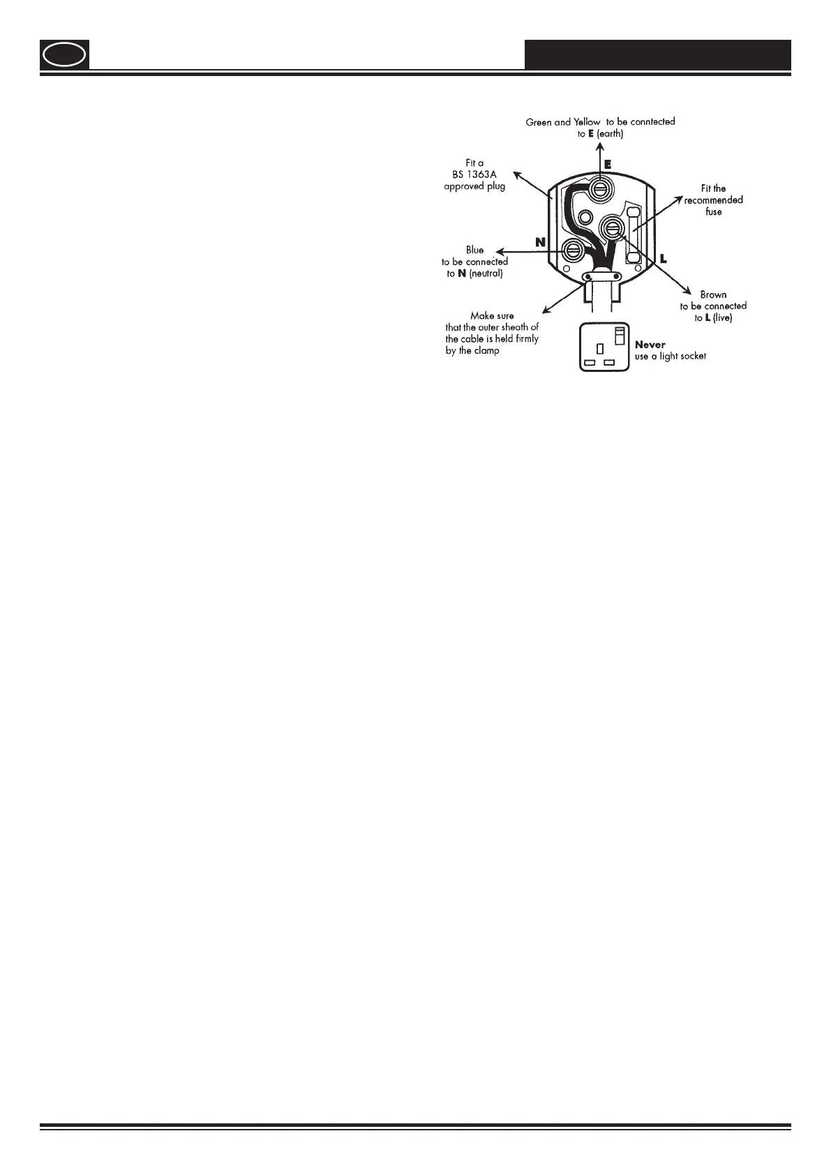 Should the moulded plug have to be replaced, never re-use the defective plug or attempt to plug it into a dierent 13 A socket.
