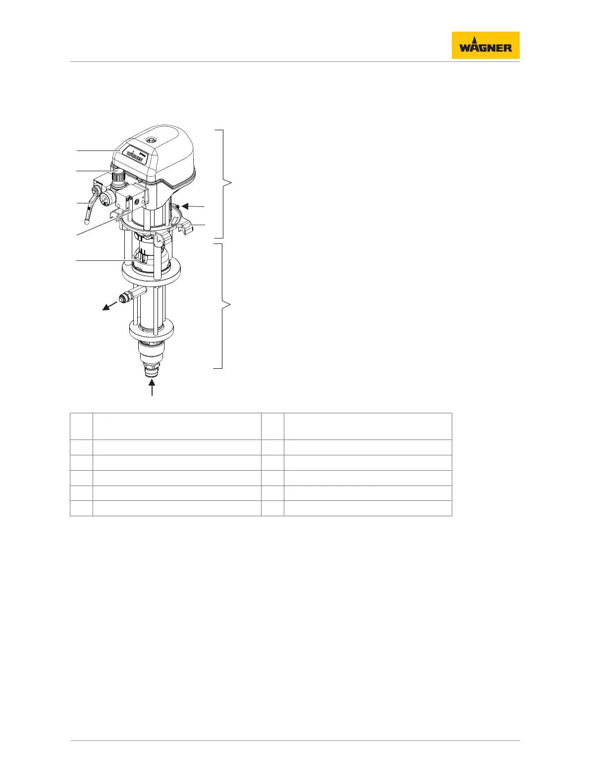 The piston pump is driven with compressed air (2). This compressed air moves the air piston