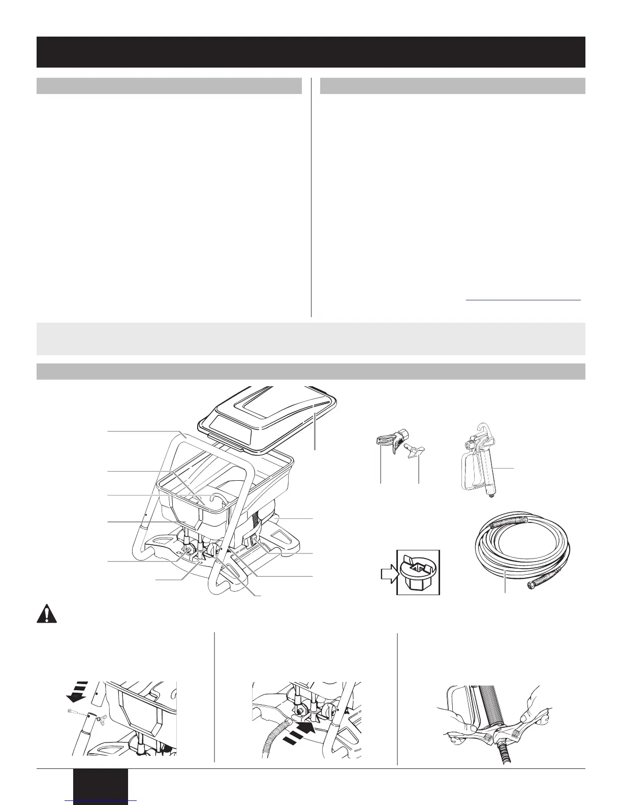 Safety features: Spray gun trigger lock and pressure diffuser;