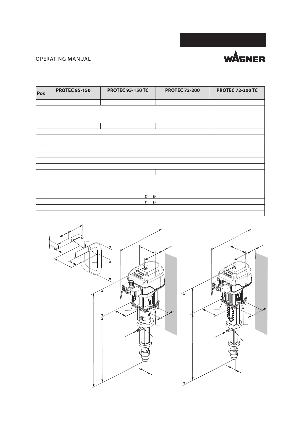 WAGNER PROTEC 95-150 - Dimensions and Connections for PROTEC 95-150 and 72-200