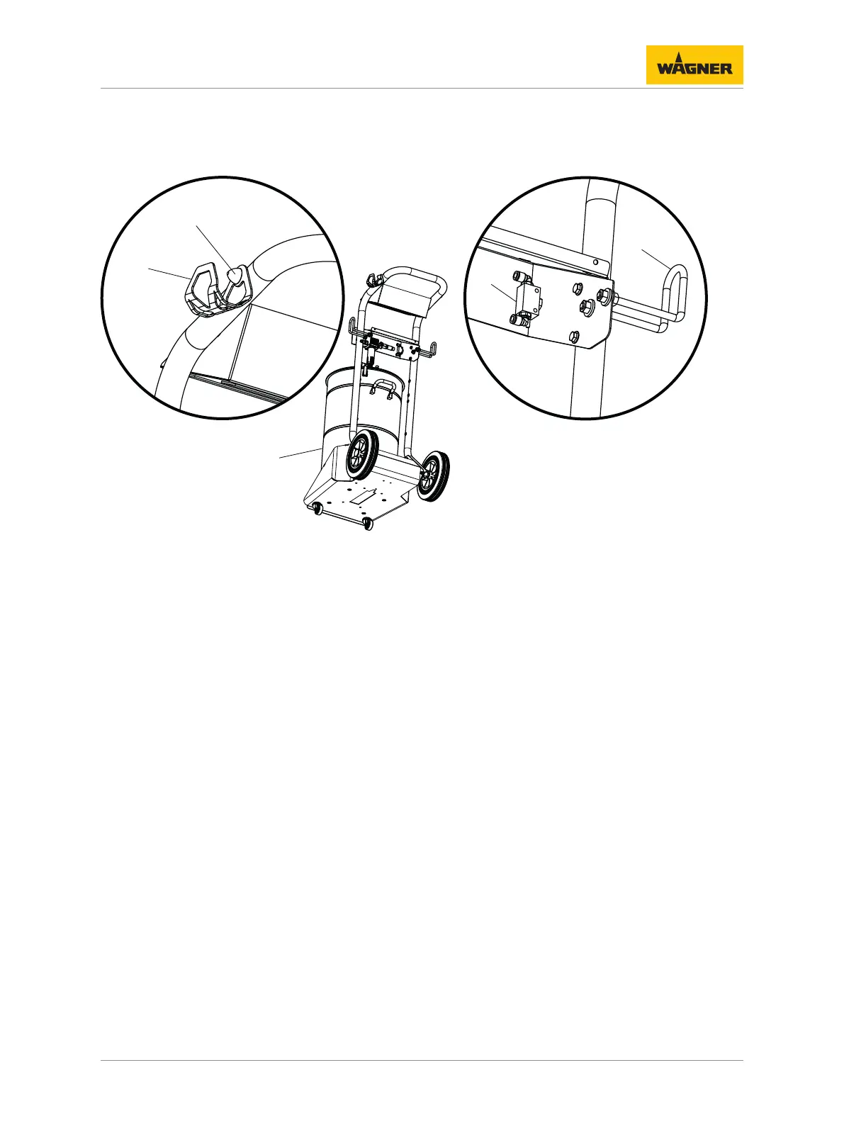 2. Fasten the hose holder (9) to the left and right of the mobile base with four M8 nuts