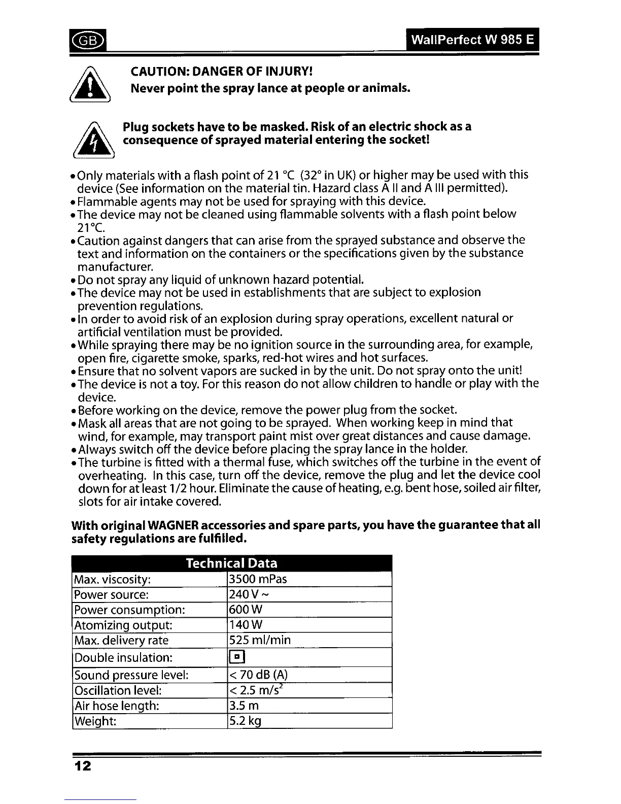 WAGNER WallPerfect W 985 E - Technical Data