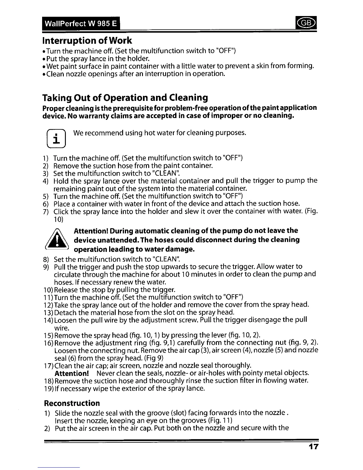 WAGNER WallPerfect W 985 E - Work Interruption and Cleaning; Taking Out of Operation and Cleaning