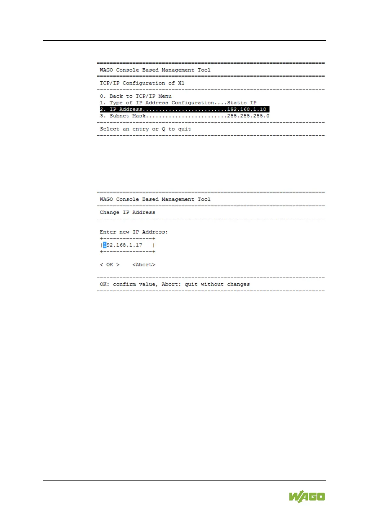 WAGO PFC100 - Figure 25: CBM - Selecting the IP Address; Figure 26: CBM - Entering a New IP Address