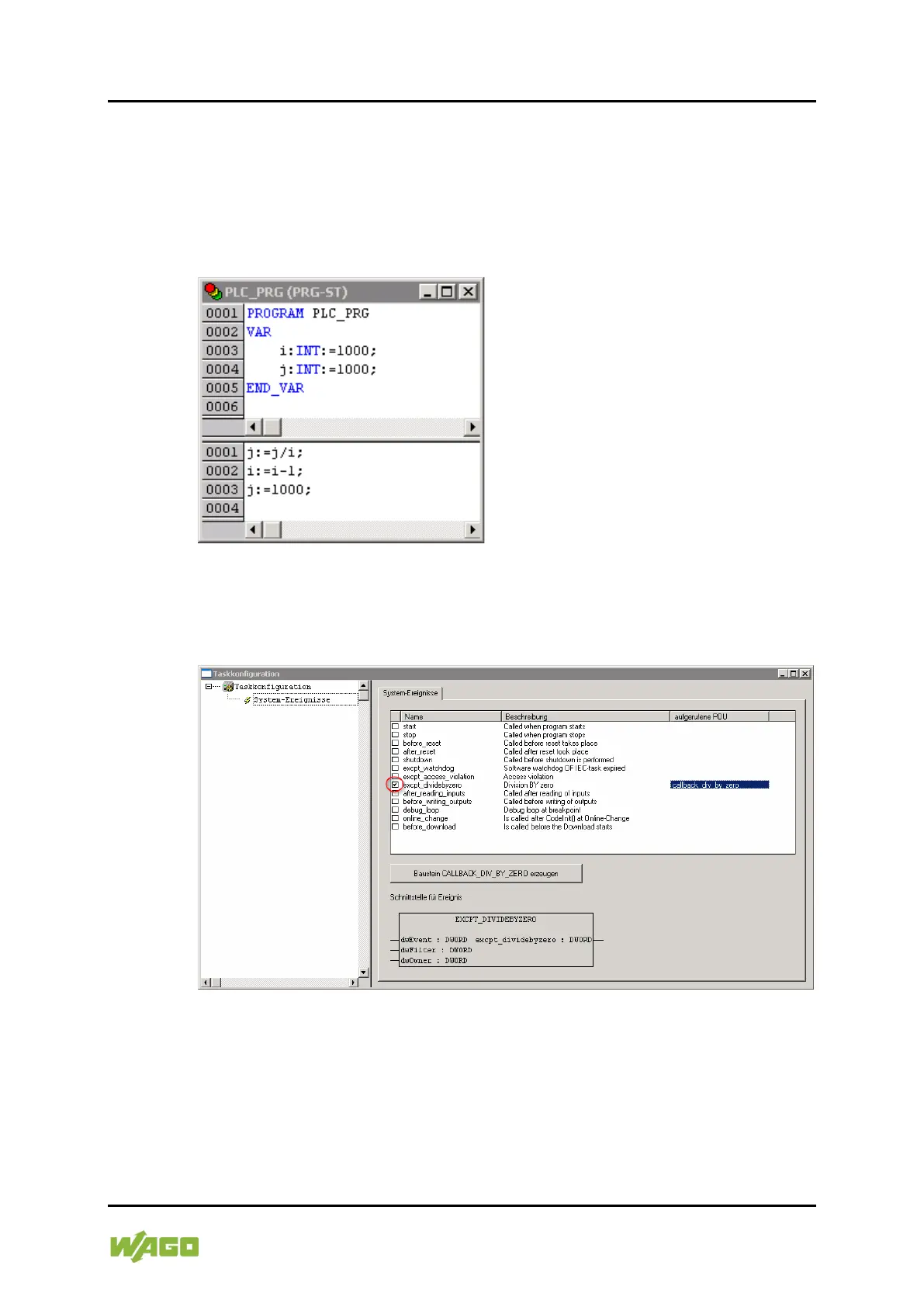 After this, the system event “excpt_dividebyzero” is activated in the Task