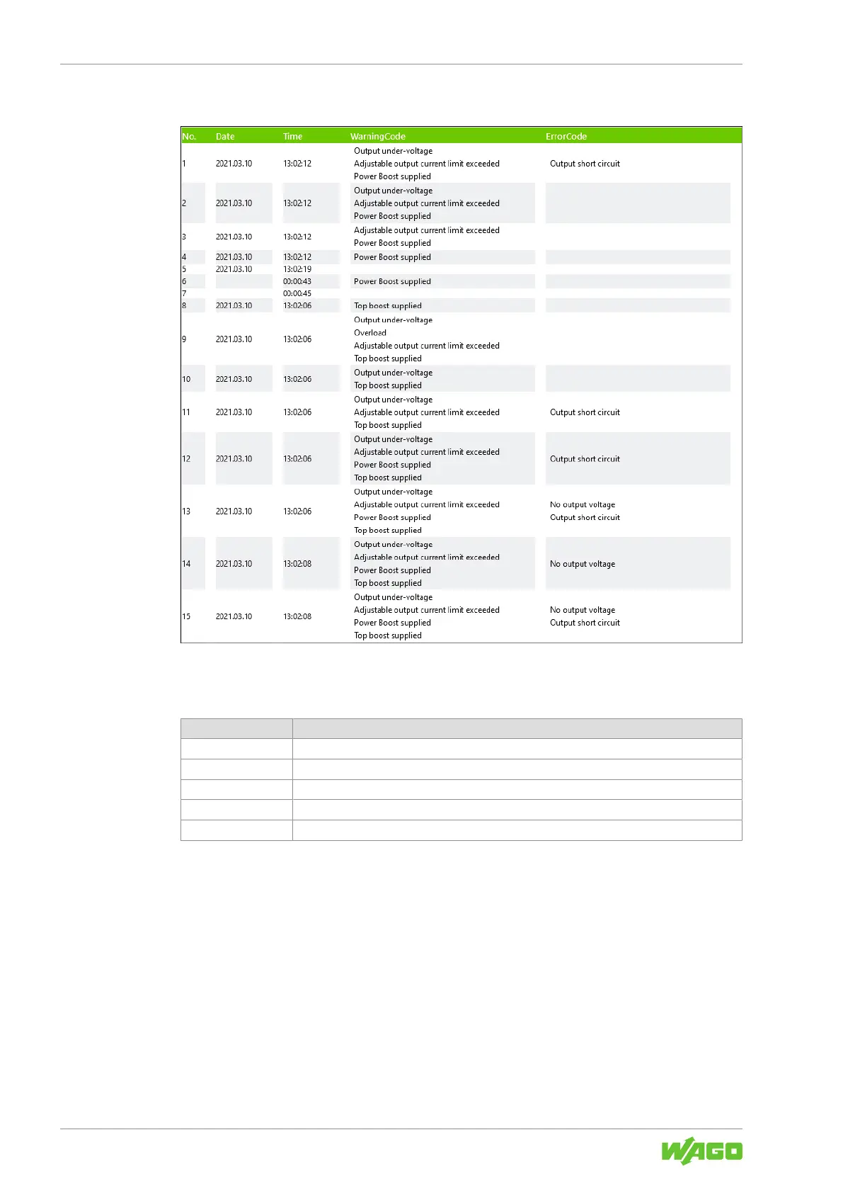 Warning Code Text of the accumulated warning.