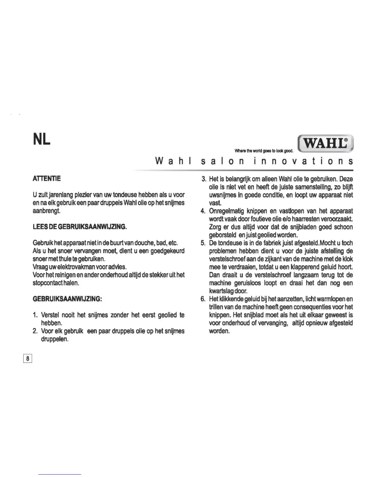 Wahl Super Taper - Attention and Usage Instructions; Read the User Manual; General Usage Instructions