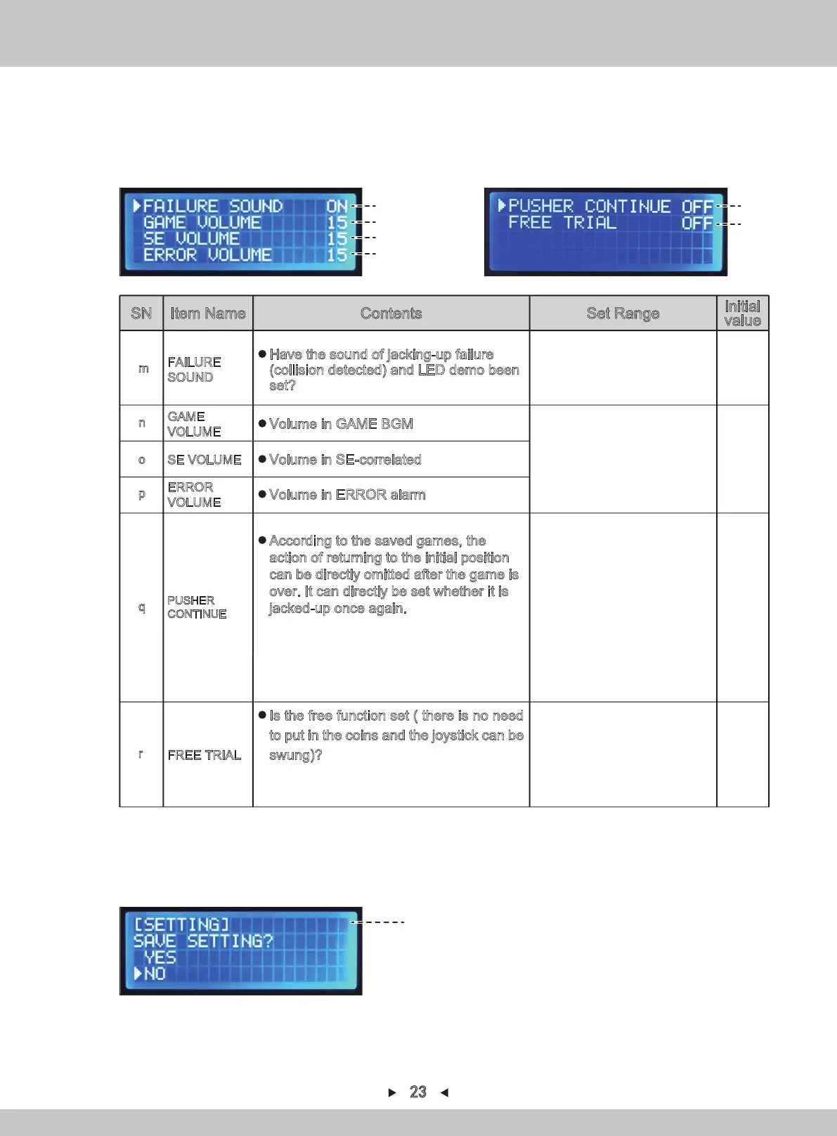 If the setting is not changed with the arrow at NO: