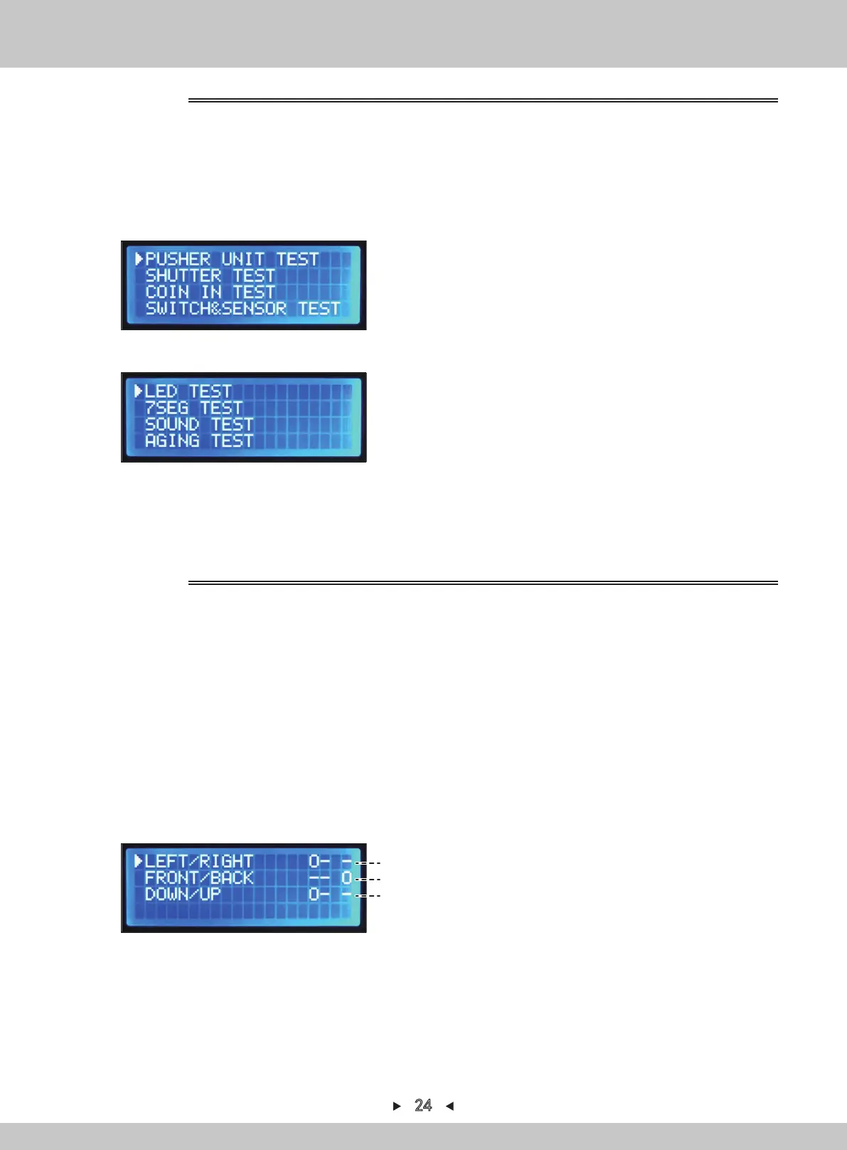 3. By pressing [↑] and [↓] , the arrow will point to “PUSHER UNIT TEST”. Press [SETTING]