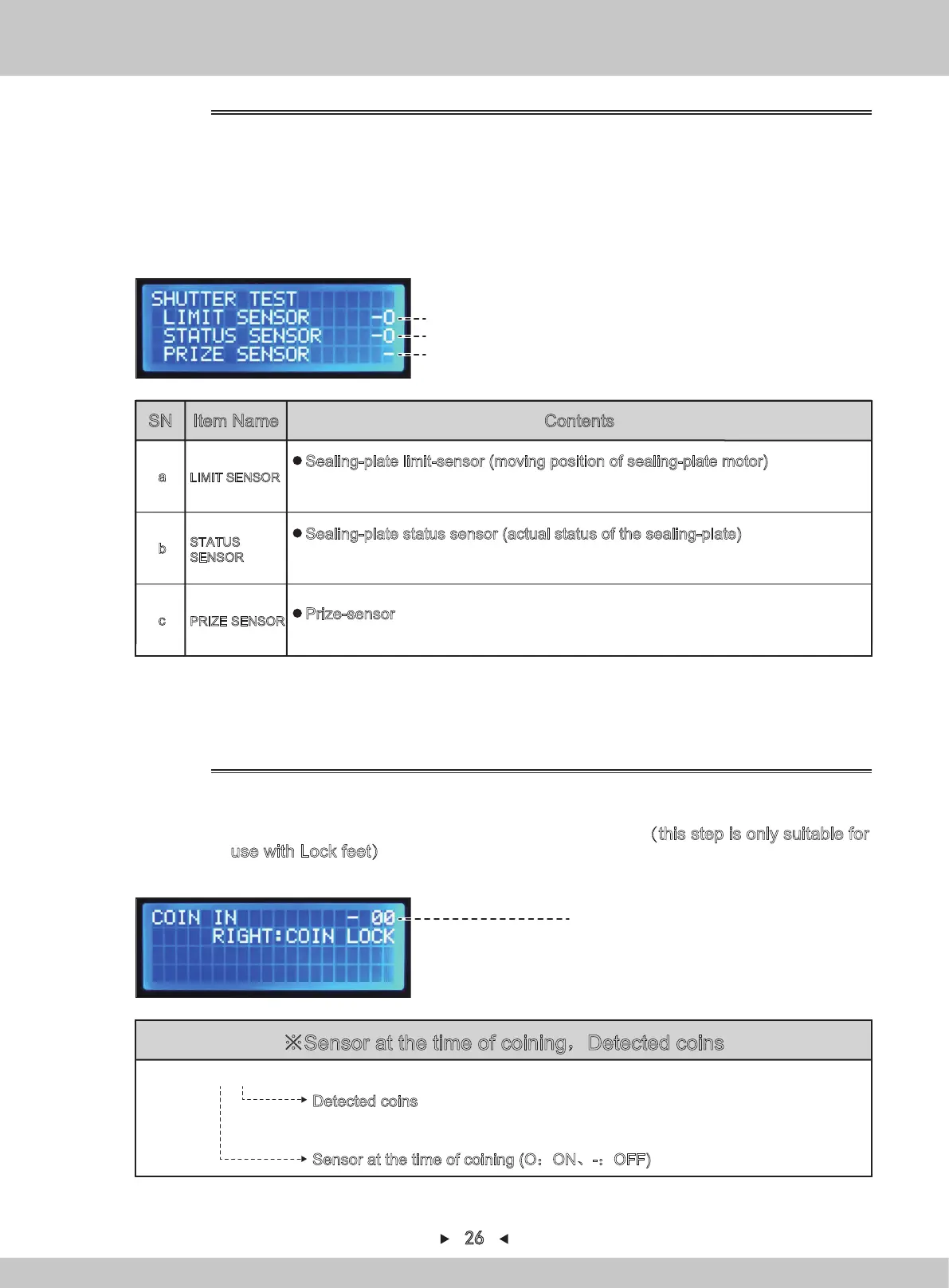 “COIN IN TEST”. Press [SETTING] to confirm.