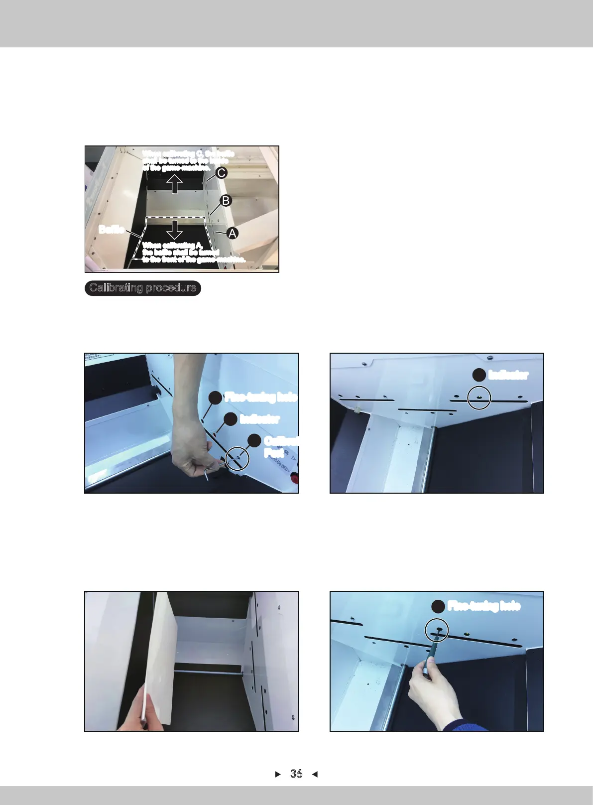 Note: When calibrating A, manually turn the baffle