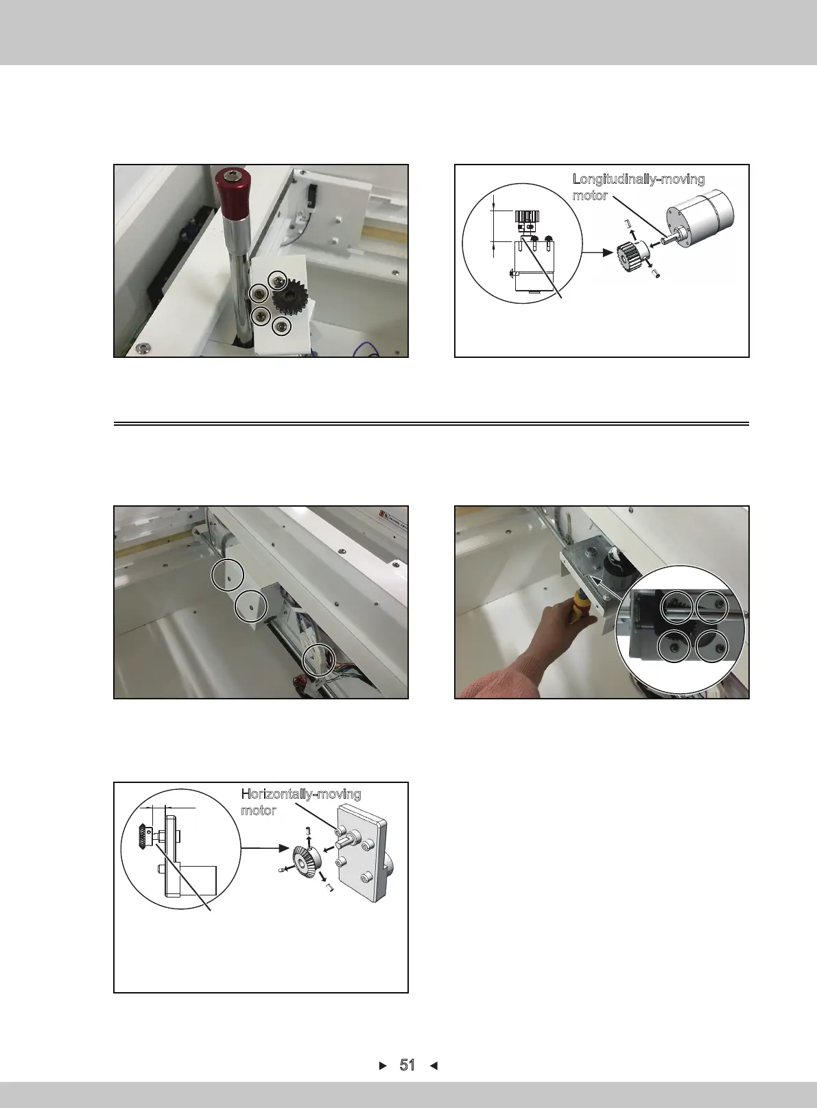 3. Remove 4 screws to fix the longitudinally-moving motor.