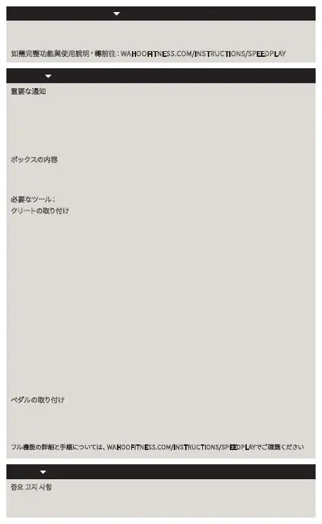 如需完整功能與使用說明,轉前往:WAHOOFITNESS.COM/INSTRUCTIONS/SPEEDPLAY