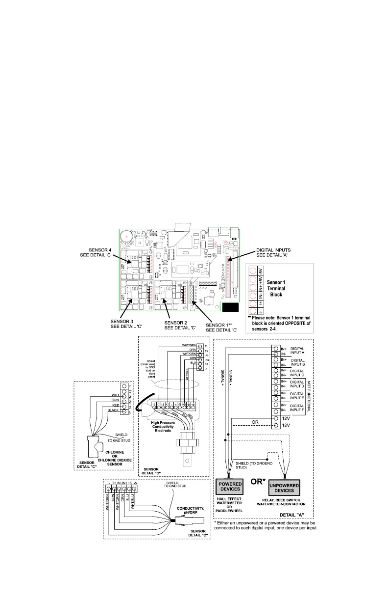 pF/foot capacitance cable. The wiring to the controller is as follows: