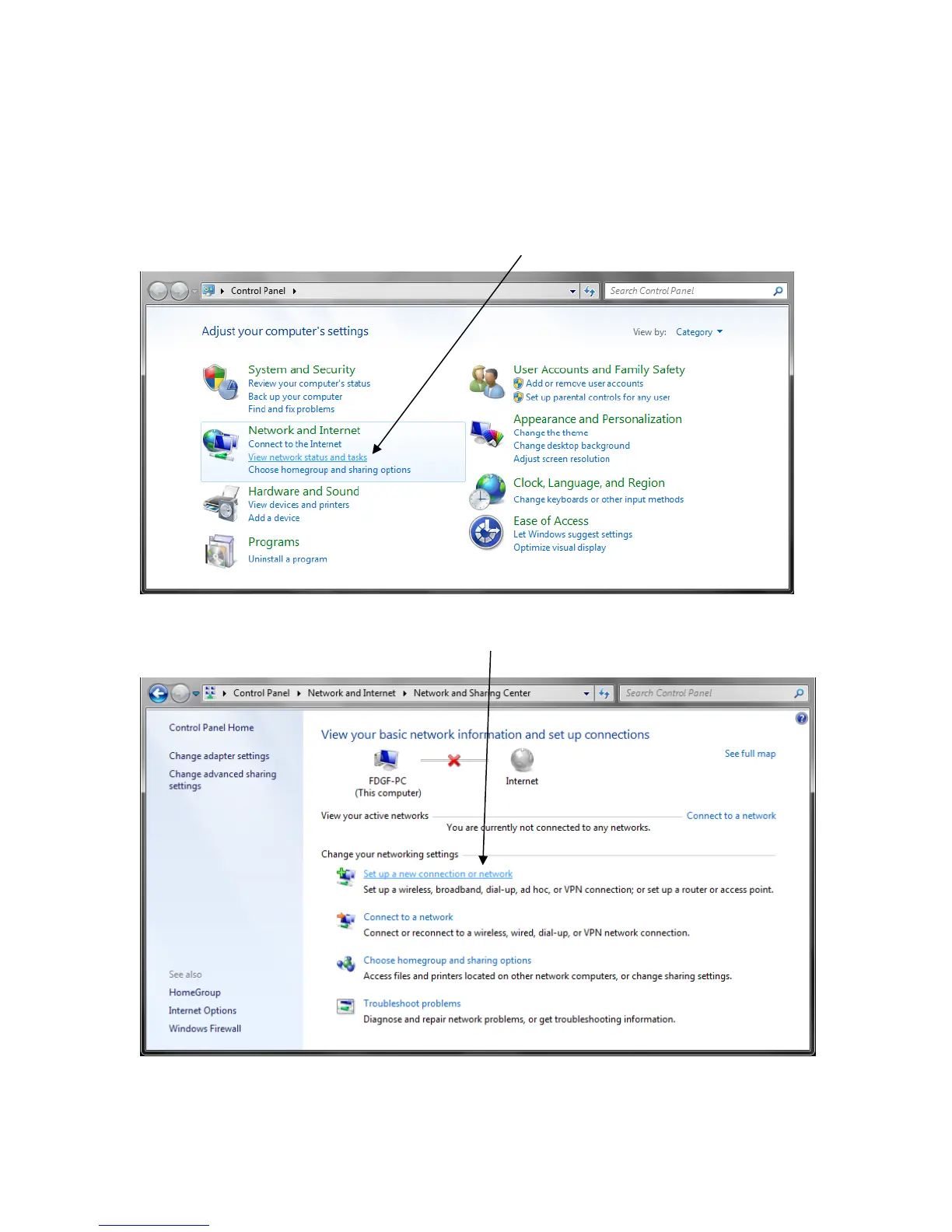 ► Click ‘Set up a new connection or network’