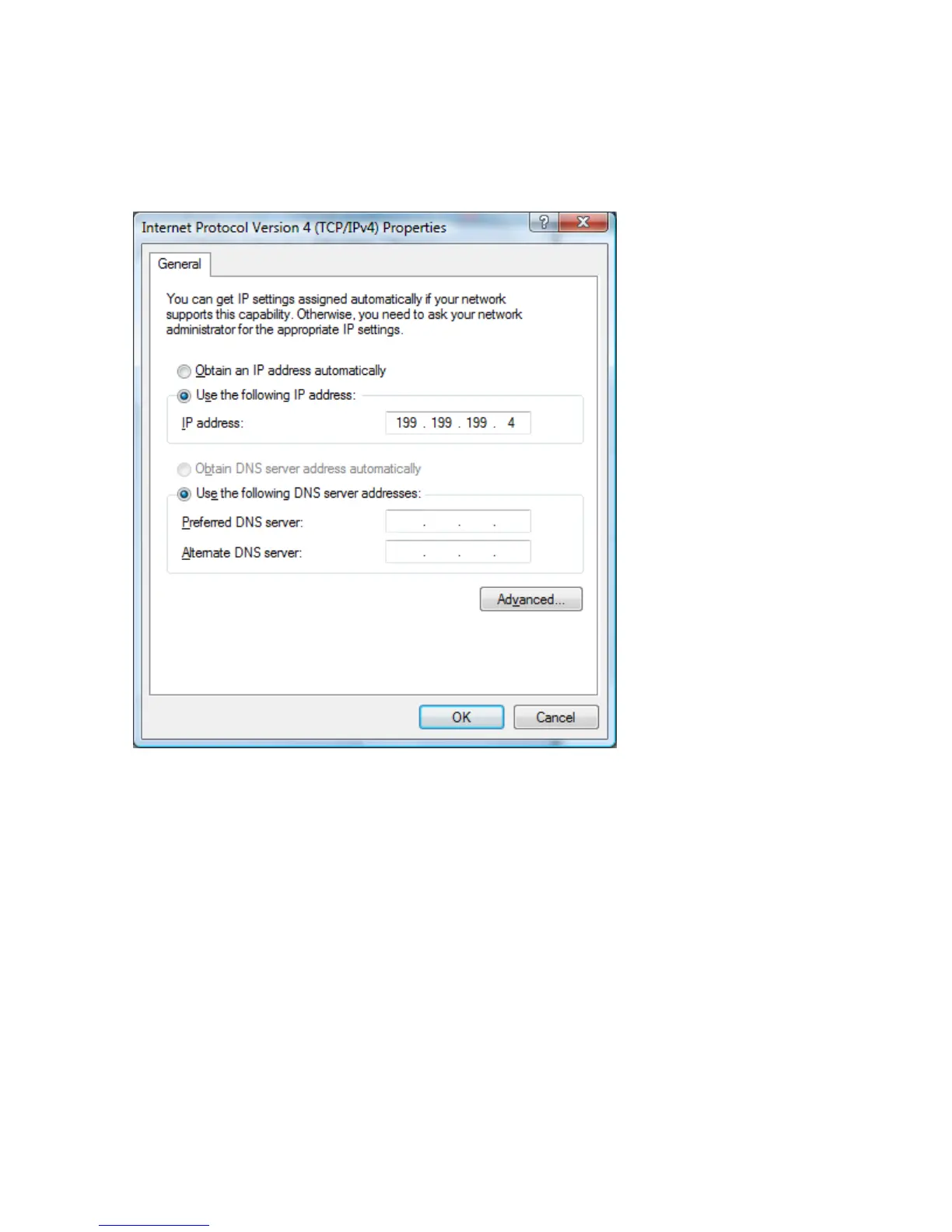 ► Select ‘Use the following IP address’ and enter 199.199.199.4