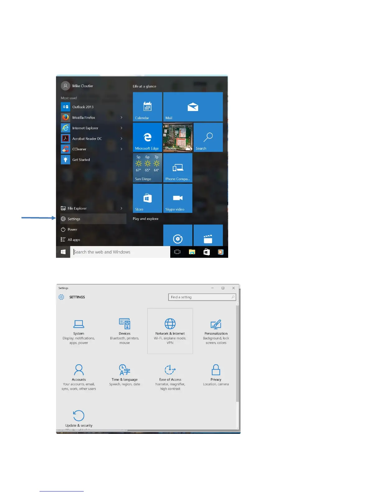 From the Start, click on Settings: