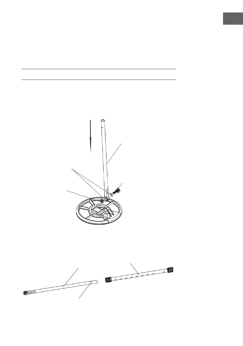 Sie den Bolzen ab. Stecken Sie den unteren Stab auf die Suchsonde und