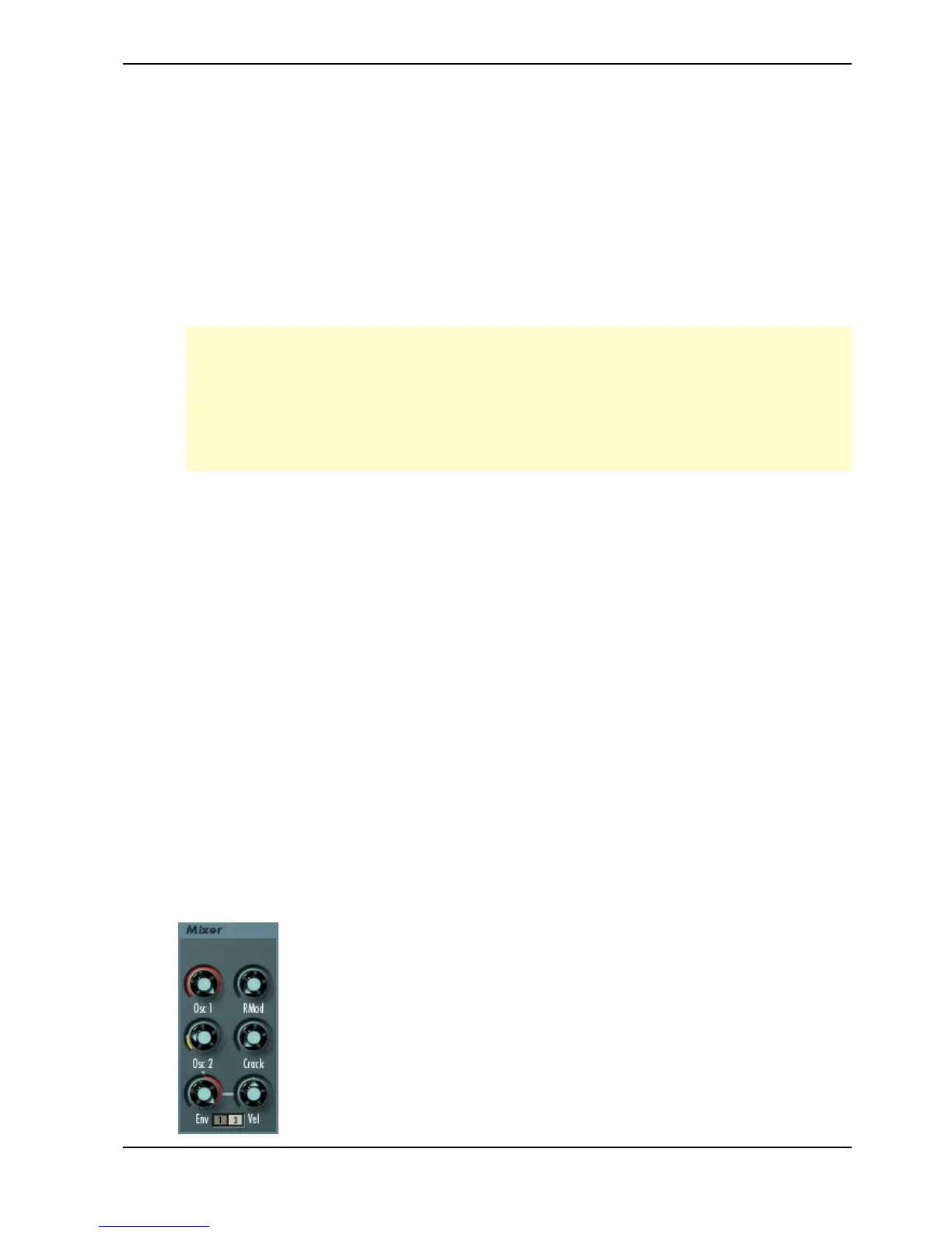 In the Mixer, you control the volumes of the two oscillators. Ring