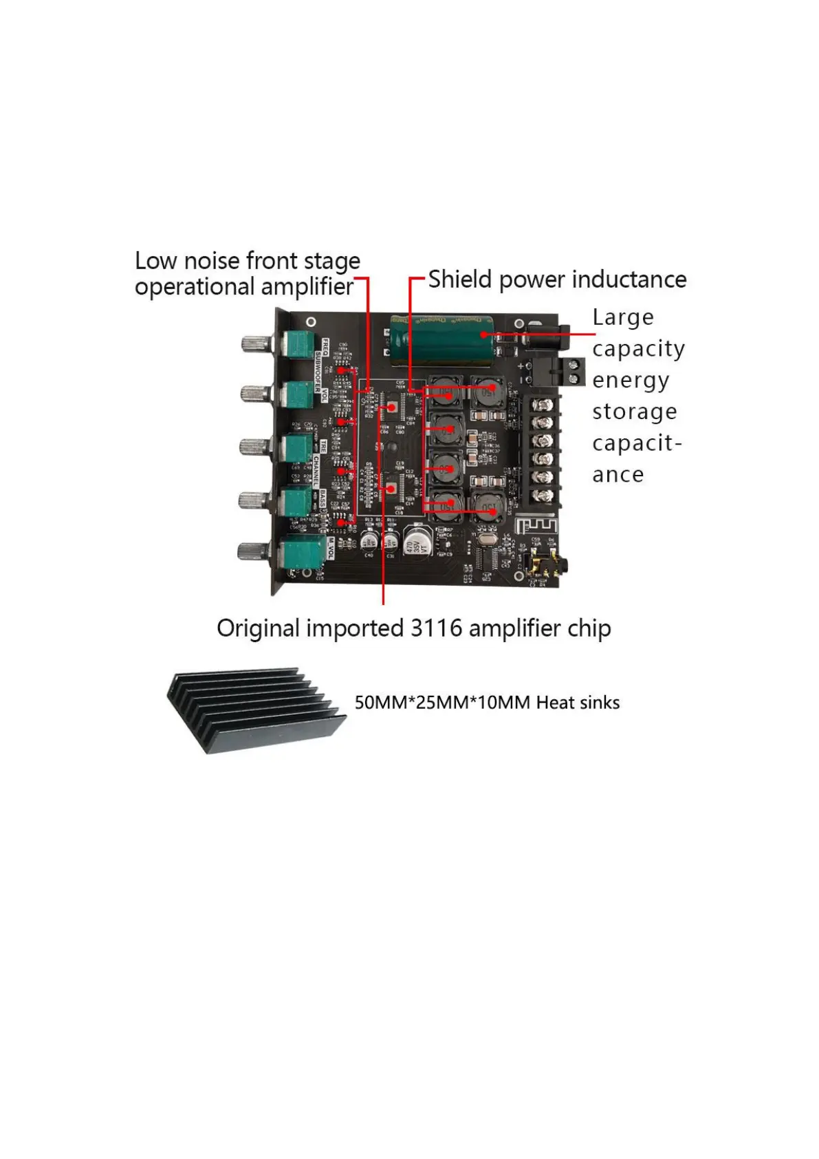 Walfront ZK-TB21 - Internal Component Details; Amplifier Chip and Front Stage; Power Inductance and Capacitance; Heat Dissipation Component