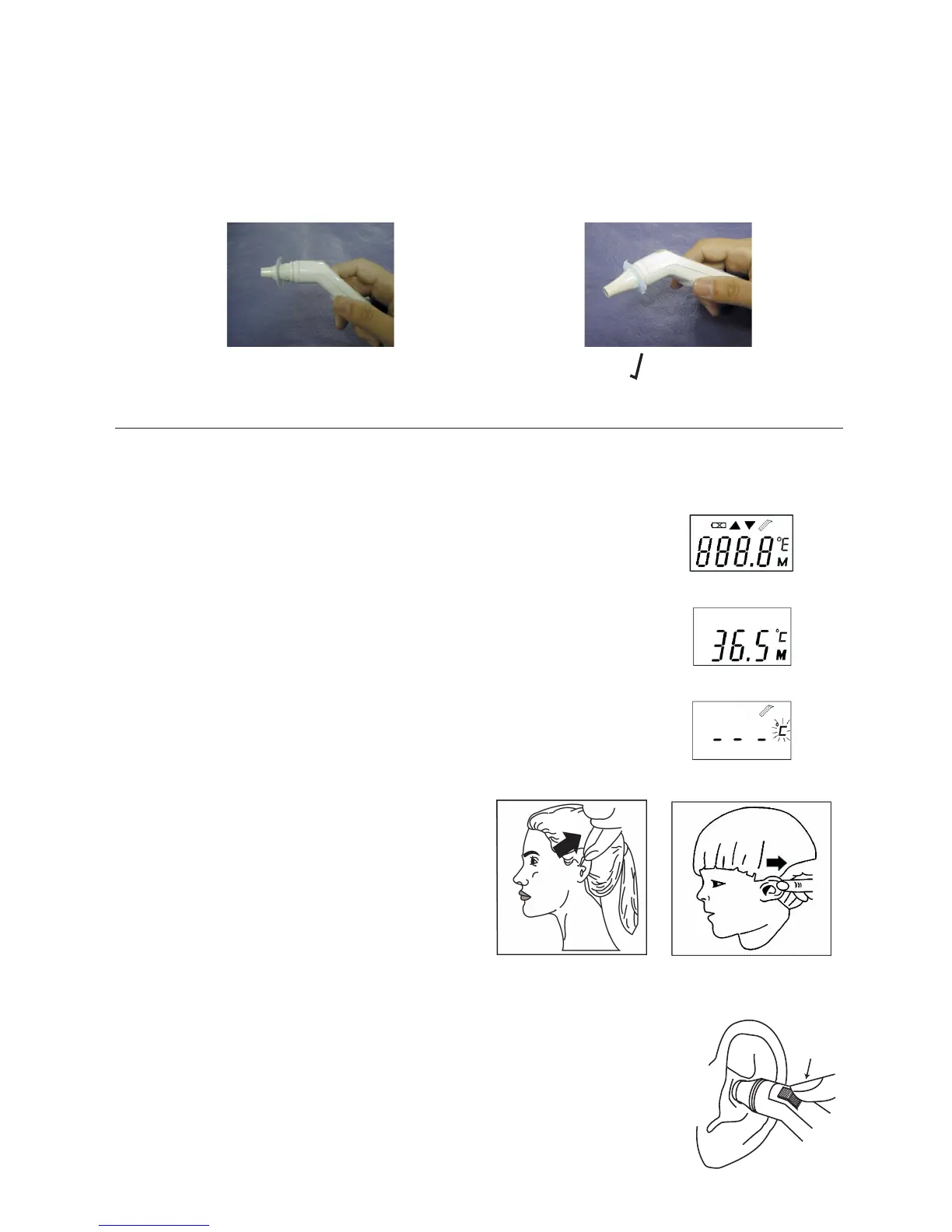 6. Retire el termómetro del conducto auditivo. La pantalla LCD muestra