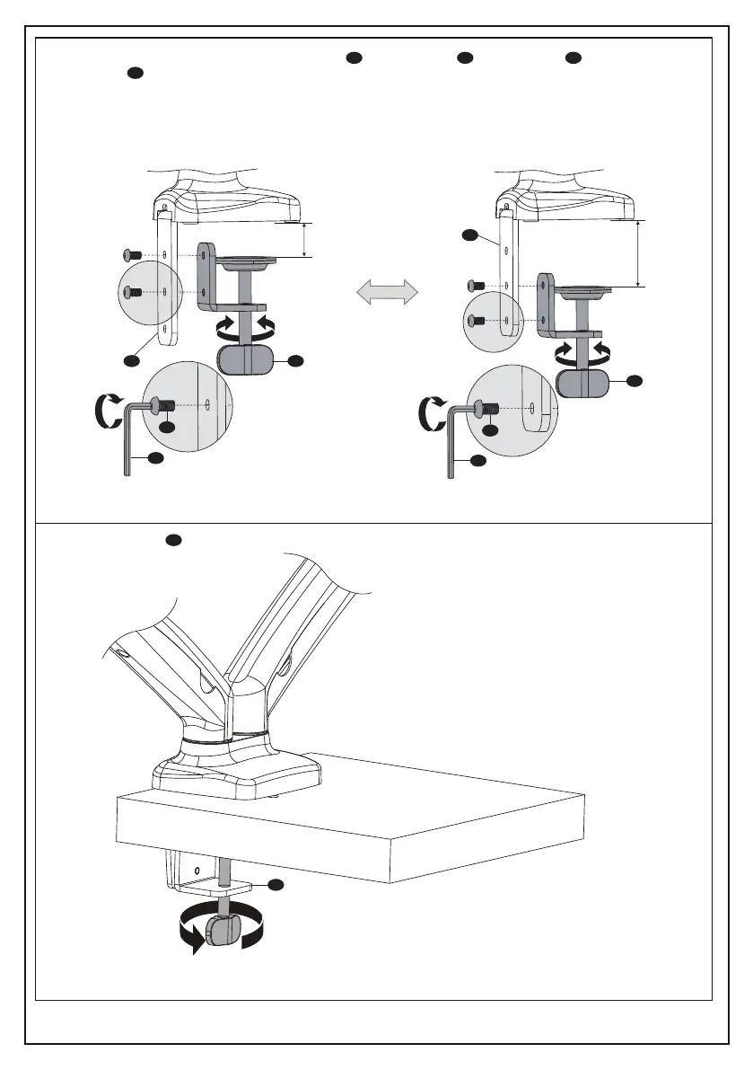 2. Select the preferred height firstly and connect C-Clamp D to C-Clamp Brace C using M6x10 Bolt E and tighten with