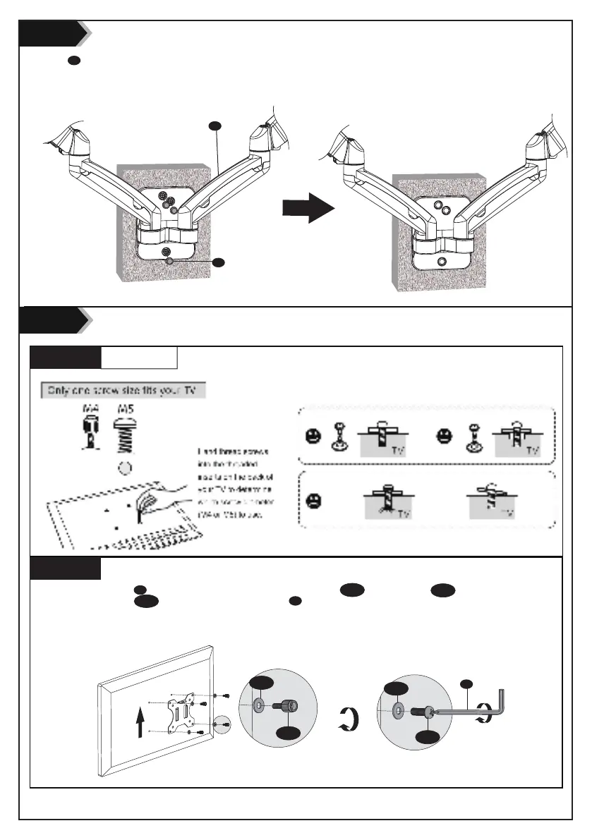 Attach the VESA Plate B to your TV/Monitor, and thread M4x12 Bolt M-A or M5x12 Bolt M-B into the mounting