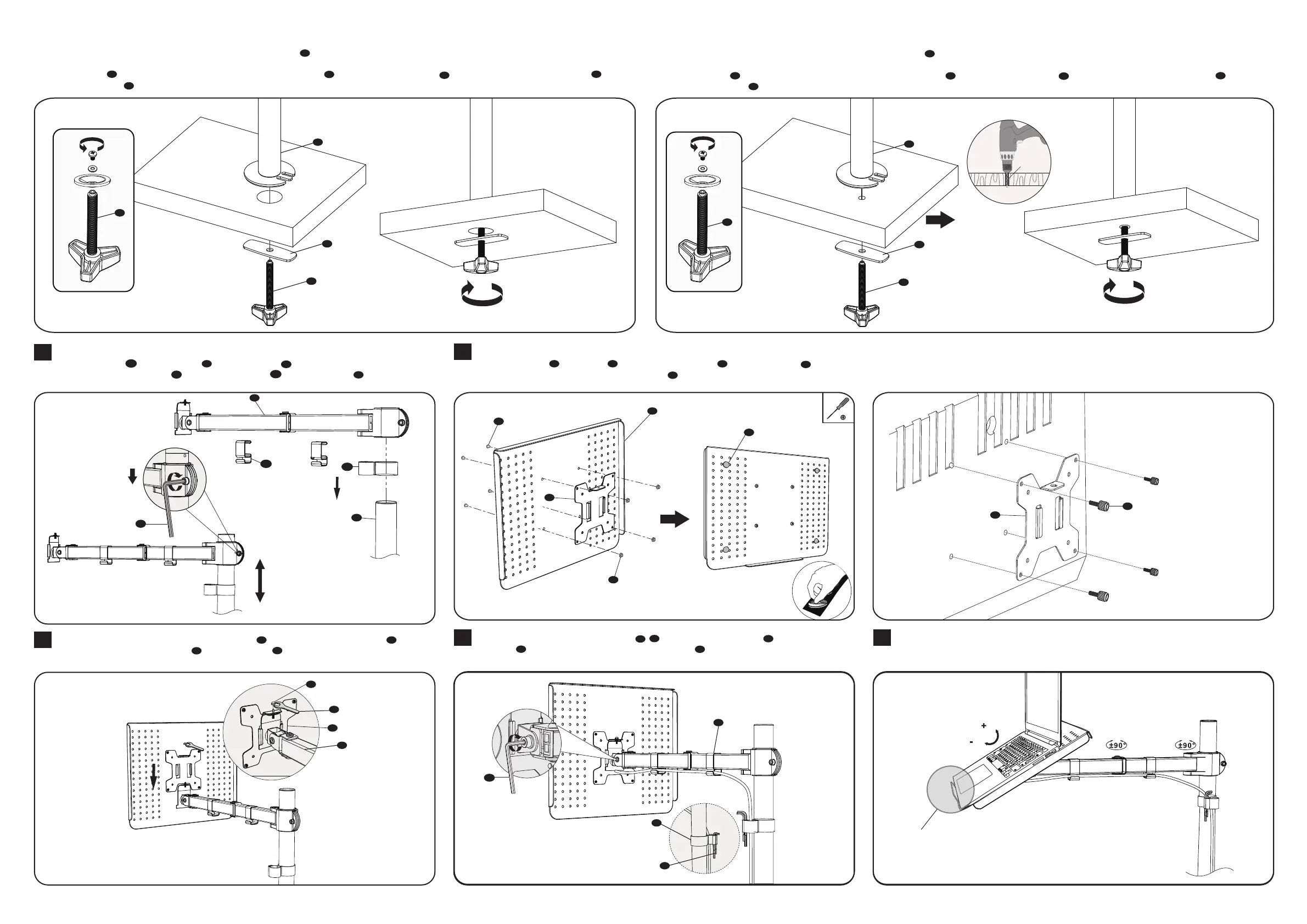 Put the assembled laptop tray onto the Swivel Arm d and install the security M6 Nut h as the